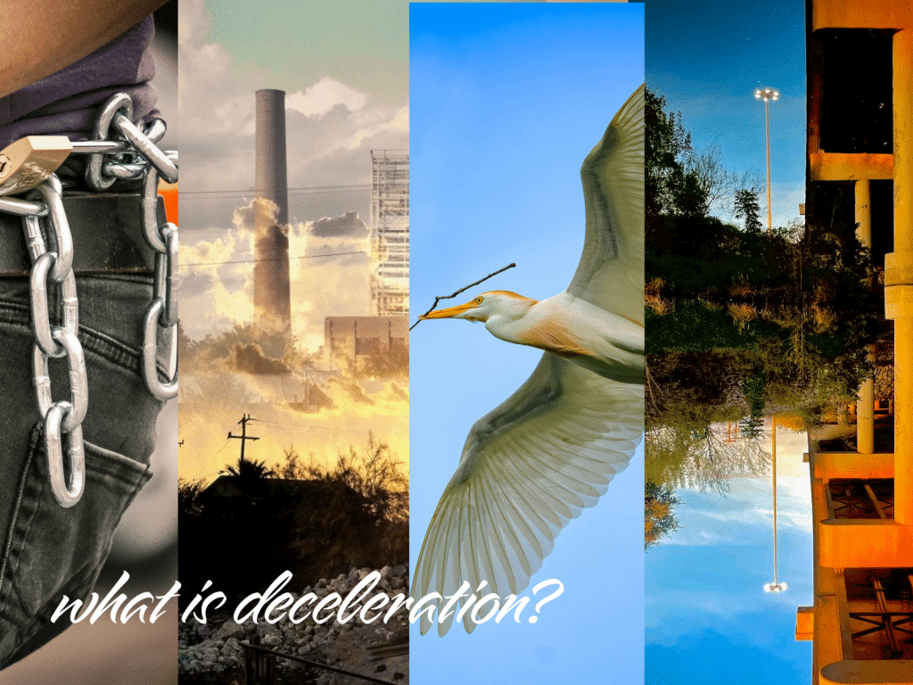 Rooted in the greater South Texas bioregion, Deceleration is inspired by intellectual and political movements around the world for degrowth, buen vivir, the right to the city, and the rights of nature/mother earth.