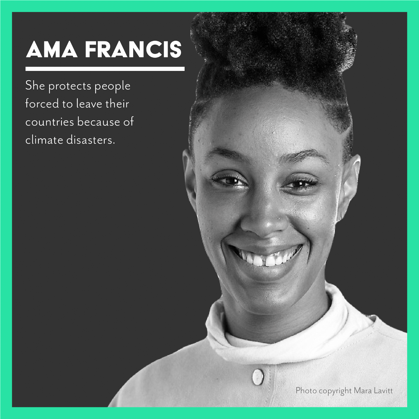 A native of Dominica, Ama Francis is a climate law fellow at the Sabin Law Center at Columbia University, working to help people displaced by climate disasters and make small island nations more resilient in the facing of rising seas and dangerous storms. Source: Nexus Media