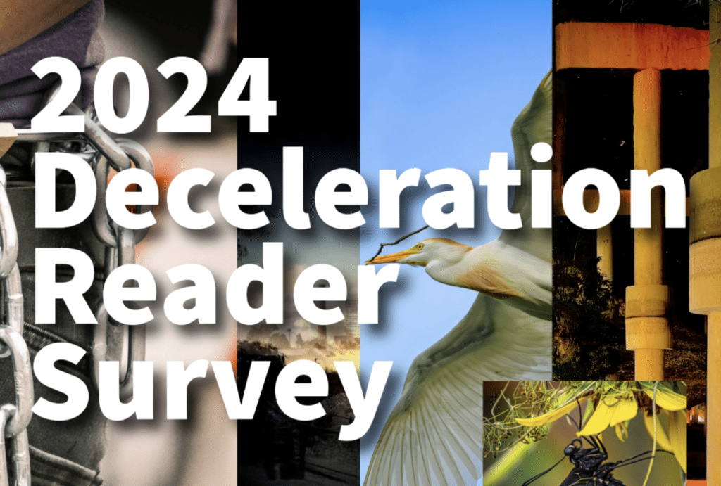 Let us know how you engage with Deceleration and what you’d like us to cover in the year to come. Click above to share your thoughts on how we can better serve as a resource to the communities we care about—especially those we anticipate will be most targeted under the incoming administration.