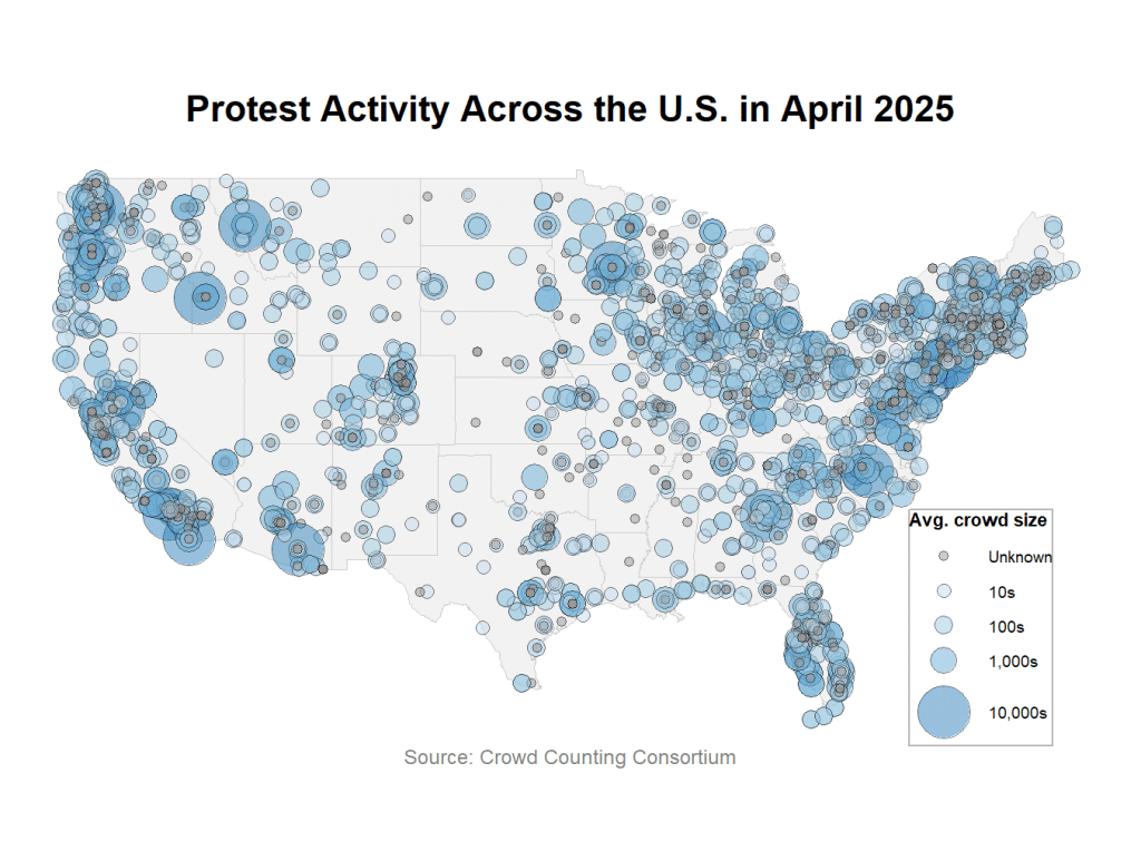 In fact, as we discussed in March, protests in the U.S. have been quite robust since Trump took office the second time.
