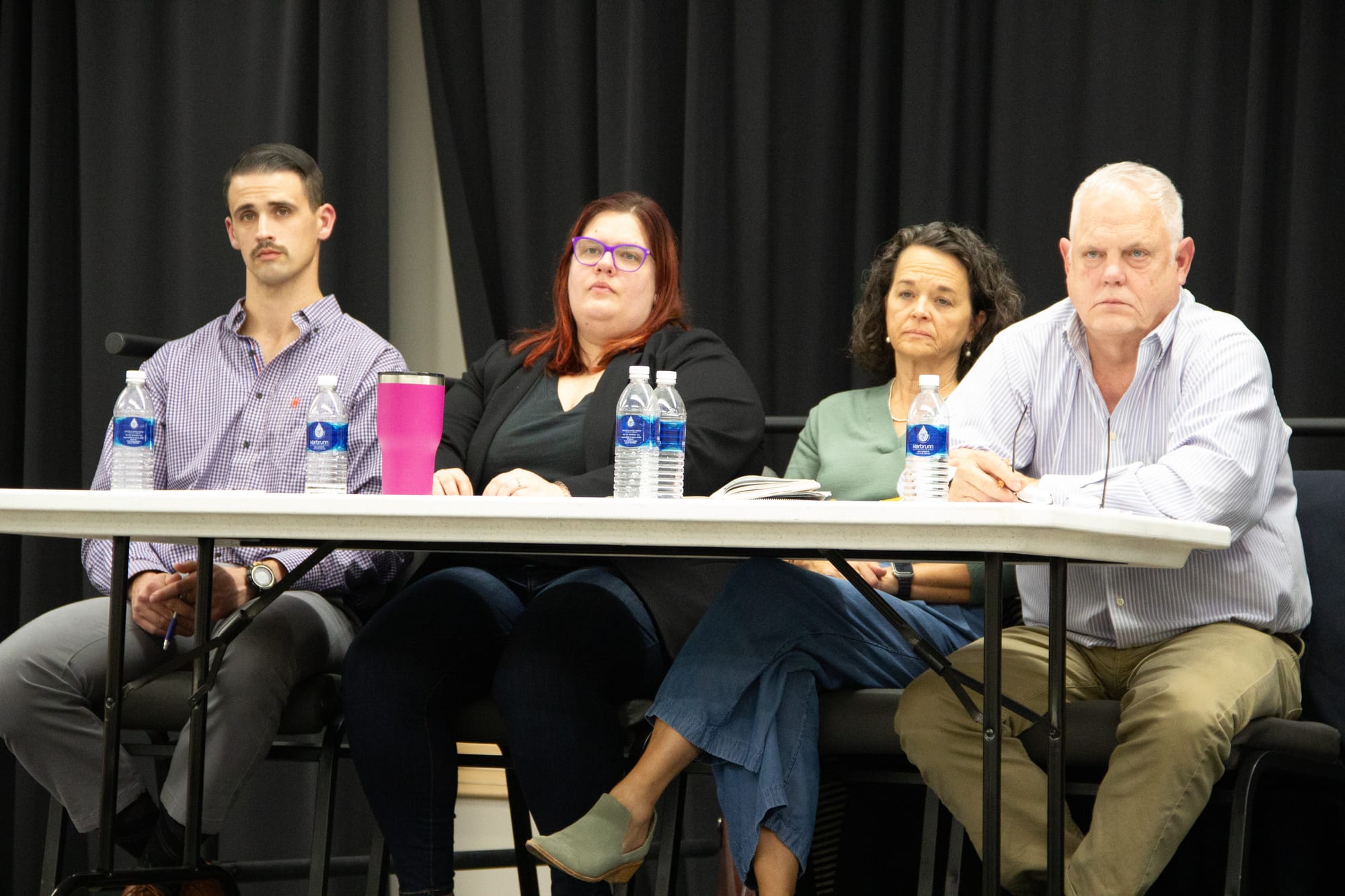 As around 200 residents and advocates trickle into Portland Community Center on the evening of January 11, 2024, they are greeted by a panel on a stage: Enbridge representatives to the left, TCEQ lawyers and permitting staff behind another table on the right. Standing in the middle is moderator Brad Patterson from the TCEQ Office of the Chief Clerk.