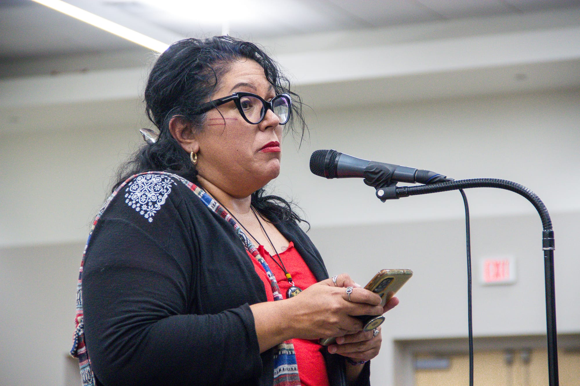 Castillo steps away from manning the Facebook live stream and up to the mic. She has long fought oil and gas projects in San Patricio County and is familiar with the structural barriers disadvantaged San Patricio County residents face.