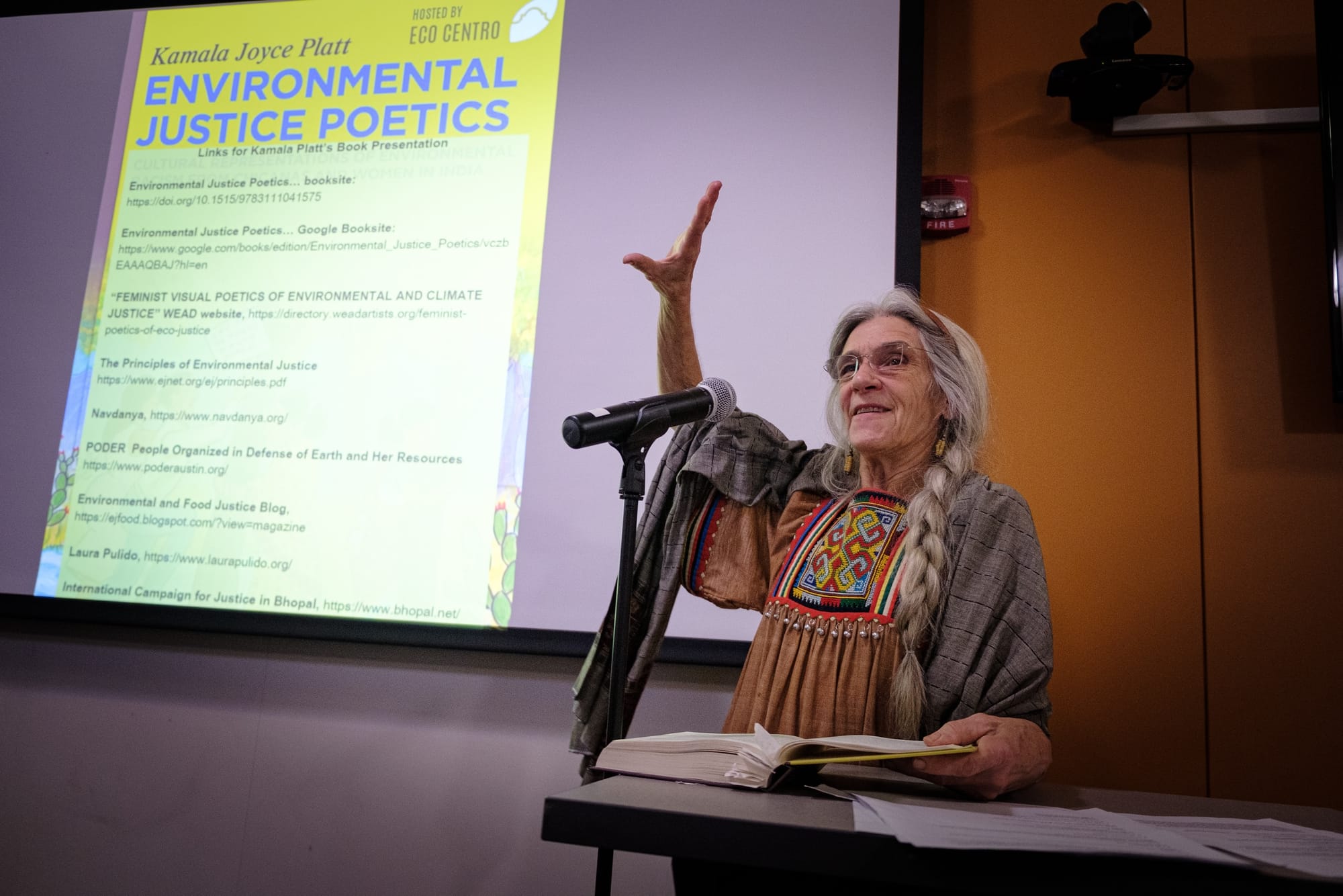 In addition to this long history with ASLE, my experiences with this year’s conference culminated nearly two years of ASLE’s spreading the word about Environmental Justice Poetics: Cultural Representations of Environmental Racism from Chicanas and Women in India. This is the book I was just beginning when I first became involved with ASLE. When the hardcover was published by the German publisher De Gruyter in October 2023, I knew I would need to publicize it to my communities. ASLE has been the best in doing that, featuring the book on its “Member Bookshelf” in March 2024, including my work in an ASLE Spotlight in January 2025, and accepting a review of the book for its journal Interdisciplinary Studies in Literature and the Environment.
