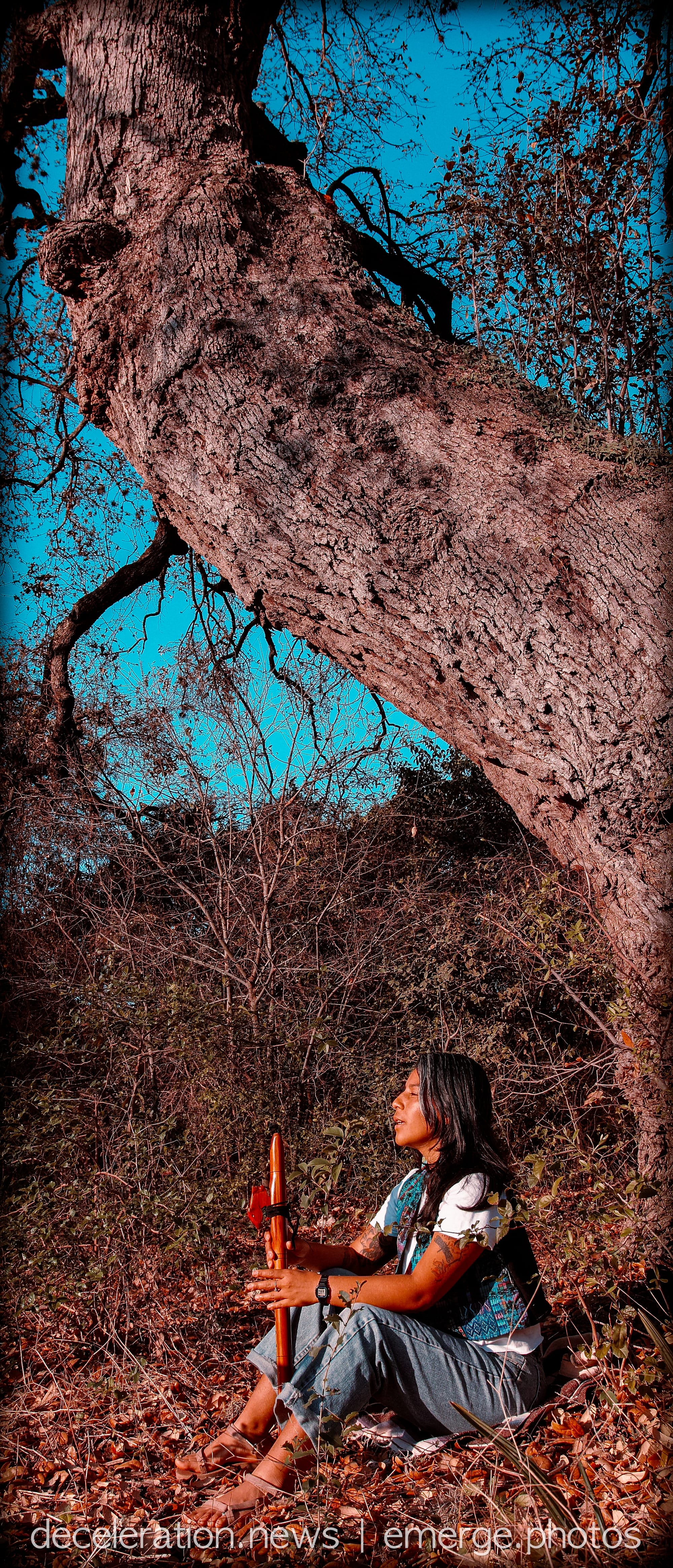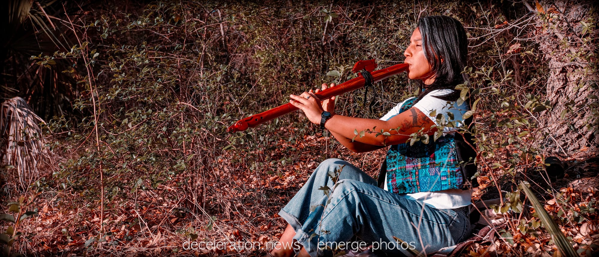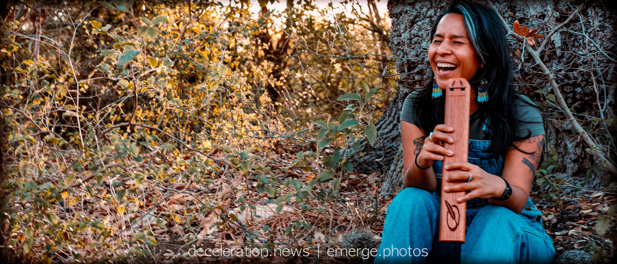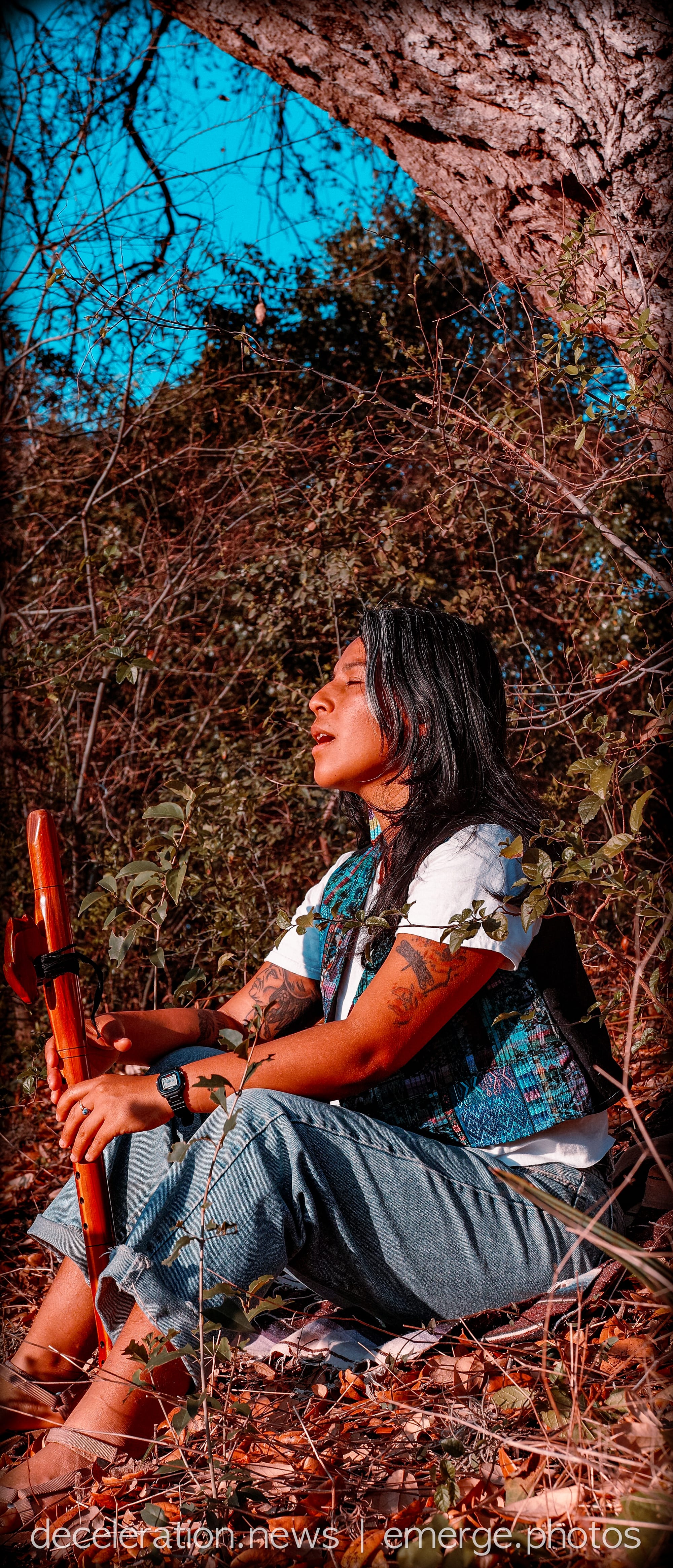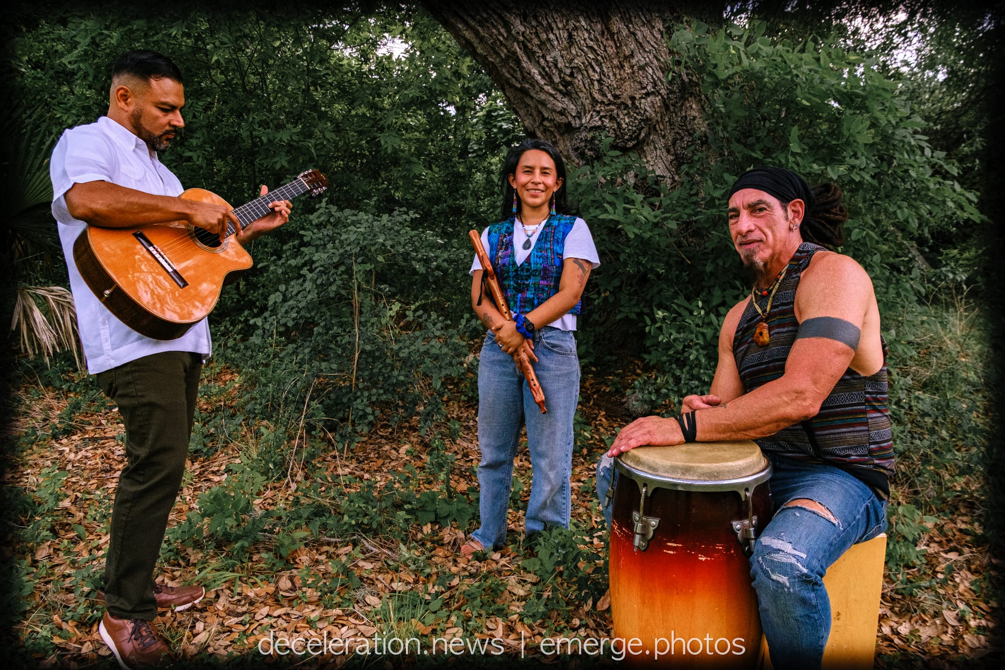 For the last few weeks, Deceleration has been stealing away to the foot of an elder oak tree beside the Blue Hole within the sacred headwaters of the San Antonio River. We’ve dipped out upon the river itself below Padre Park, which is still largely fed by recycled water as pumping to feed our expanding city a hundred years ago began to impact the link between the waters below and the waters on the surface. We were there to document a song of Indigenous cultural survivance by our friend (and calendar editor), Ceiba ili, in a time of intense anti-immigrant and anti-Indigenous actions in the United States by a rising autocratic regime. The song ‘Sunak,’ or ‘Awaken’ in English, hearkens to the growing revival of Indigenous and Tribal identities of so many long homogenized on U.S. Census forms as “Hispanic, Latino, or Spanish origin.”