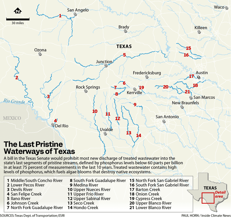 Now, as the state Legislature meets for its biennial session, advocates for water protection are supporting a bill that would prohibit most new discharges of treated wastewater into the state’s last 21 stretches of pristine rivers and streams, as defined by measured nutrient levels. Filed by state Sen. Sarah Eckhardt, a Democrat from Austin, it’s the latest iteration of a bill that groups have tried repeatedly without success to pass in Texas.