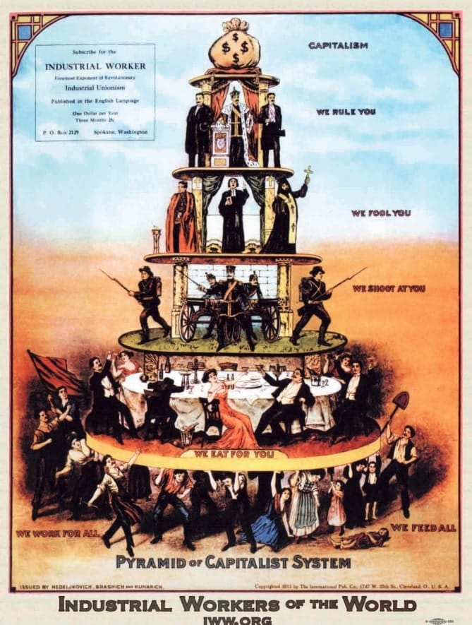 We’re also used to thinking of power as a pyramid, as in the famous IWW tower of capitalism:
