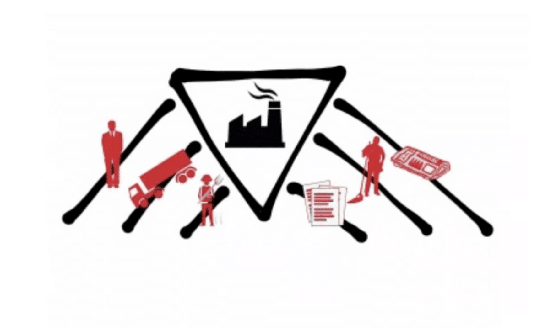 It’s still a very useful model for thinking about capitalism and its neoliberal forms of governance. But an autocracy, as Hunter explains, is better understood as an upside down triangle, held aloft on its pinnacle by pillars of institutional power—local government, media outlets, shareholders, policymakers, organized religion, the military. (Newsletter subscribers, you may recall that Greg detailed this point back in mid-November.)
