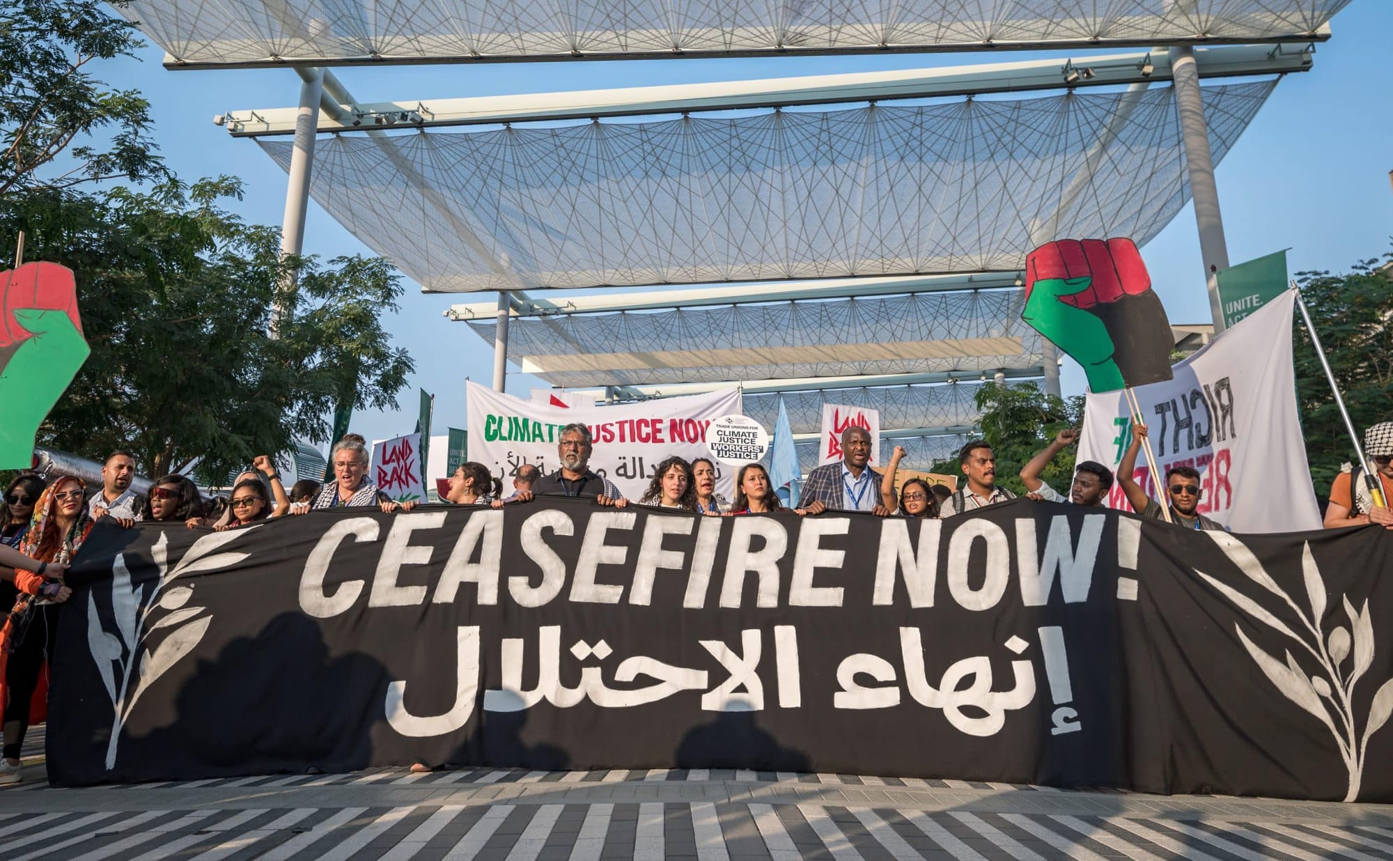 Calling for international solidarity against the destruction of Gaza during COP28, Tariq Luthun, a Palestinian organizer from the Detroit area, said: