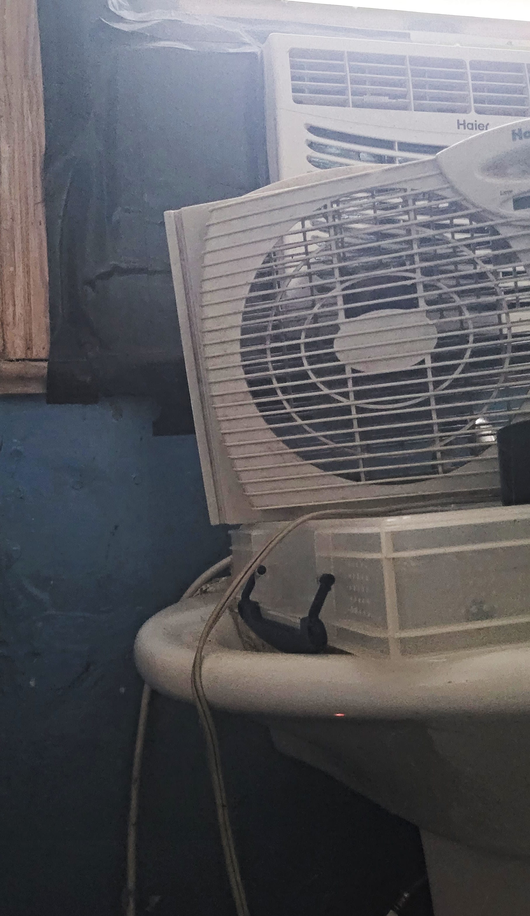 When a window unit burned out and there was no home delivery during COVID-19 restrictions, I bought a replacement rated to cool 100 square feet and installed it in the bathroom window myself. Since then, any indoor sleeping has been in the hallway outside the bathroom, with the dogs sometimes alternating sleep time on the bathroom tile.