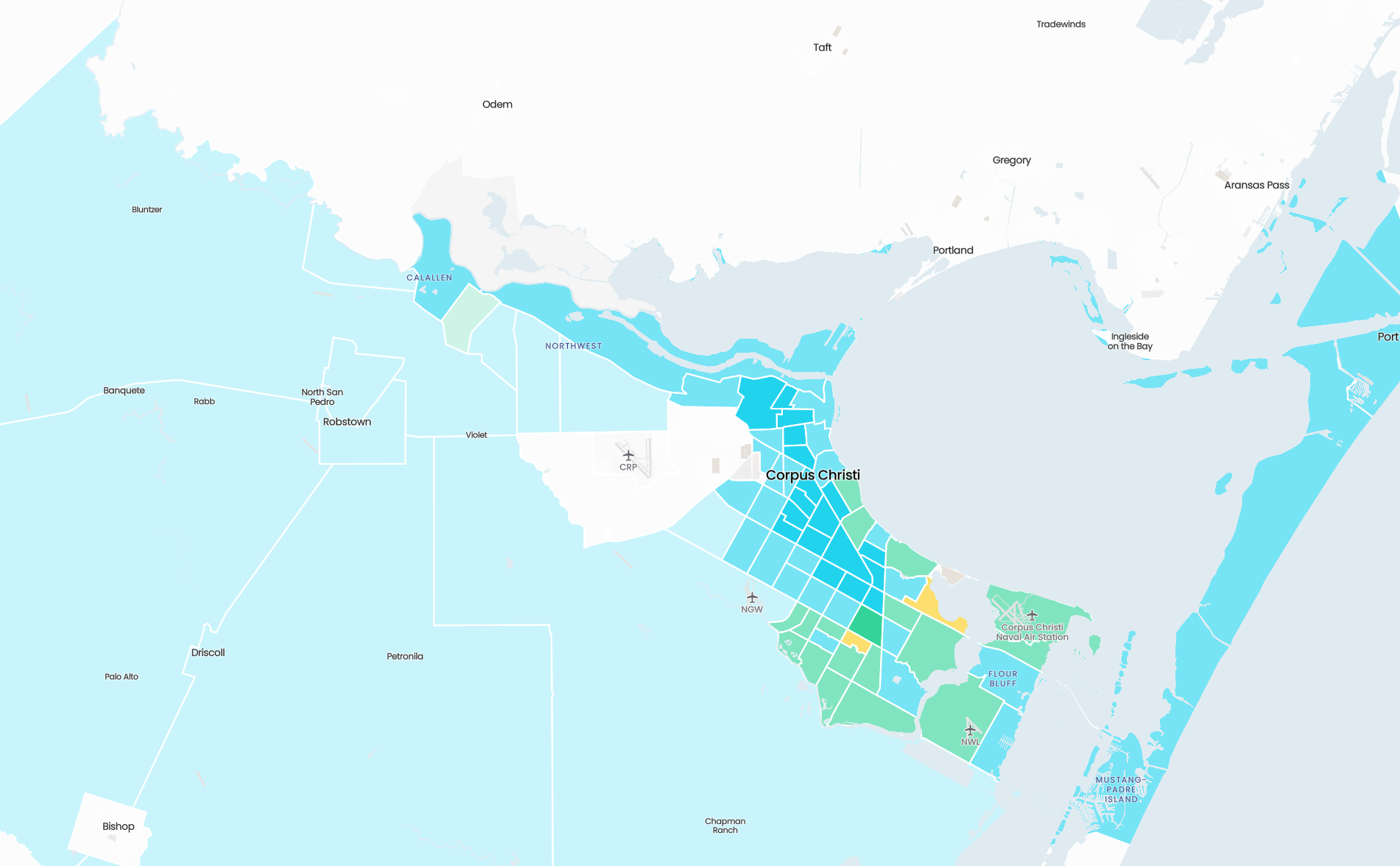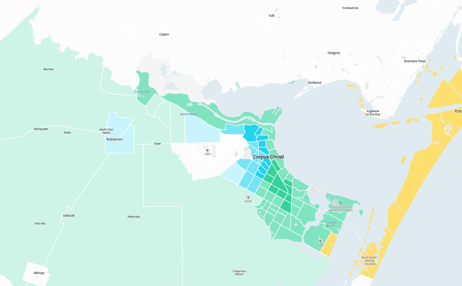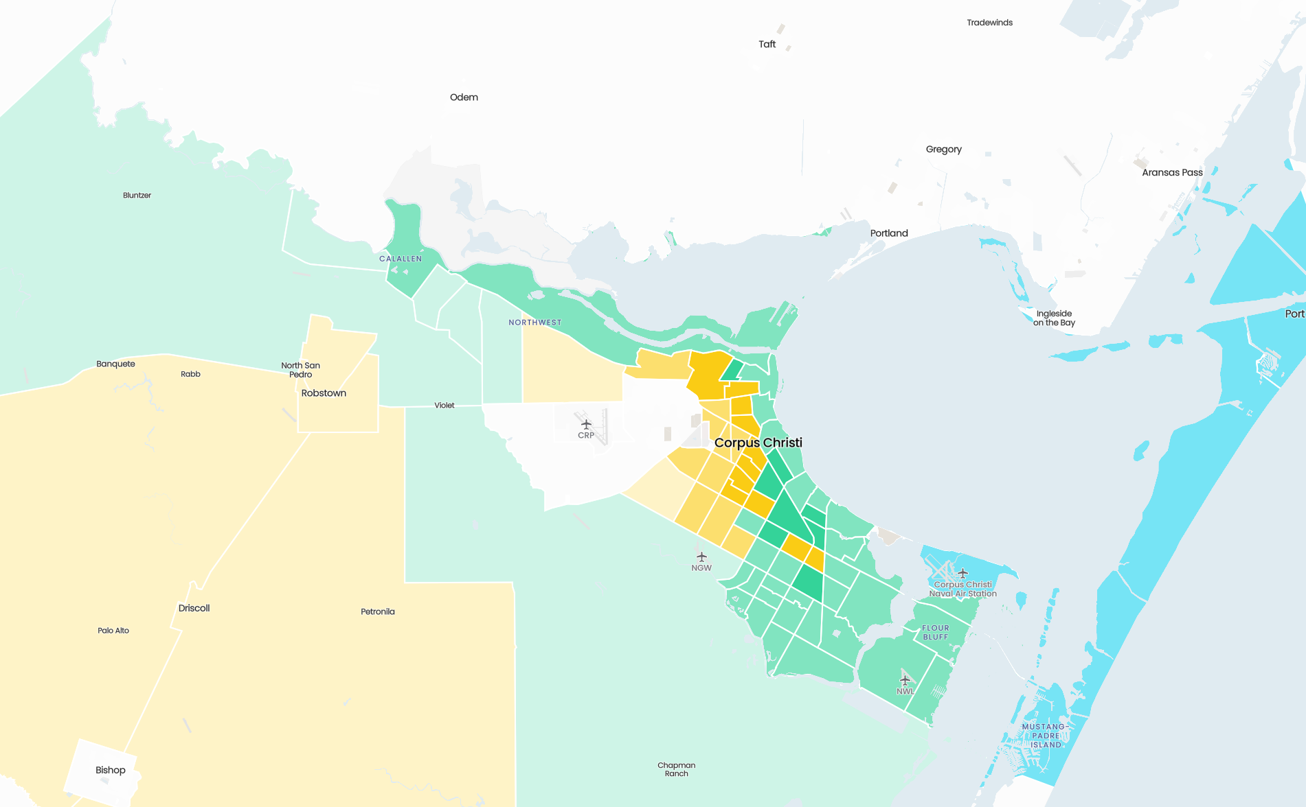 This mapping project joins “Greater Corpus Christi’s Most ‘Utility Burdened’ Neighborhoods” among Deceleration’s community resources serving Corpus residents. Deceleration consulted a range of analyses quantifying public health risks at the “Sparkling City by the Sea” to understand how heat may be interacting with other stressors to inequitably punish some residents more than others. This resource will be updated in the future as new data becomes available.