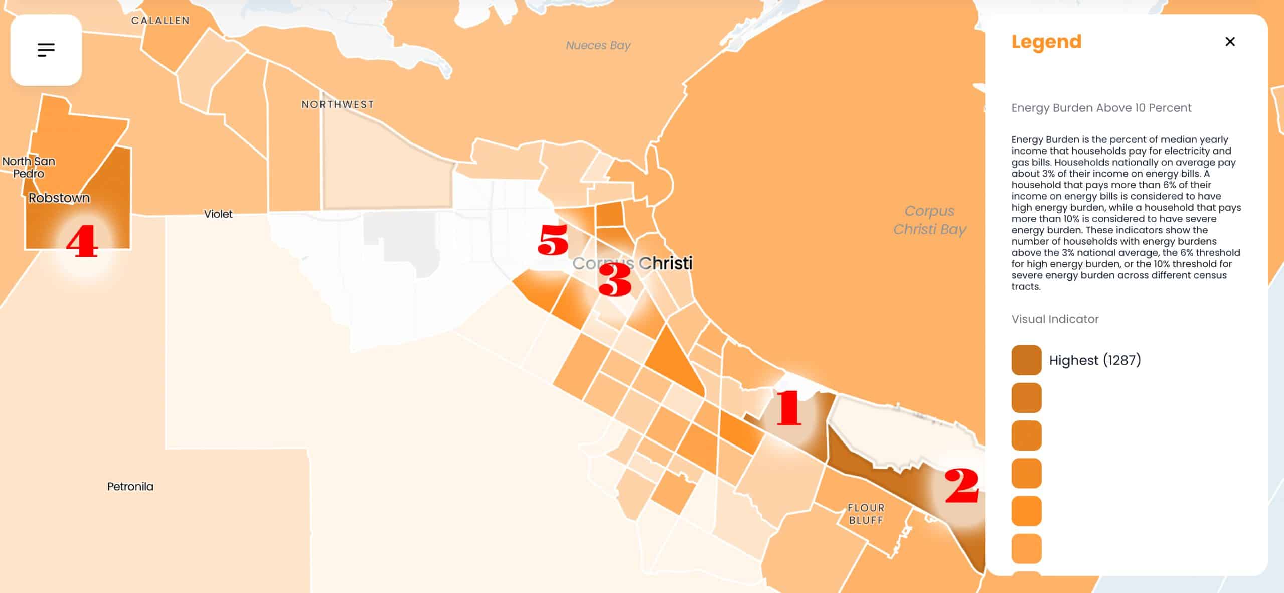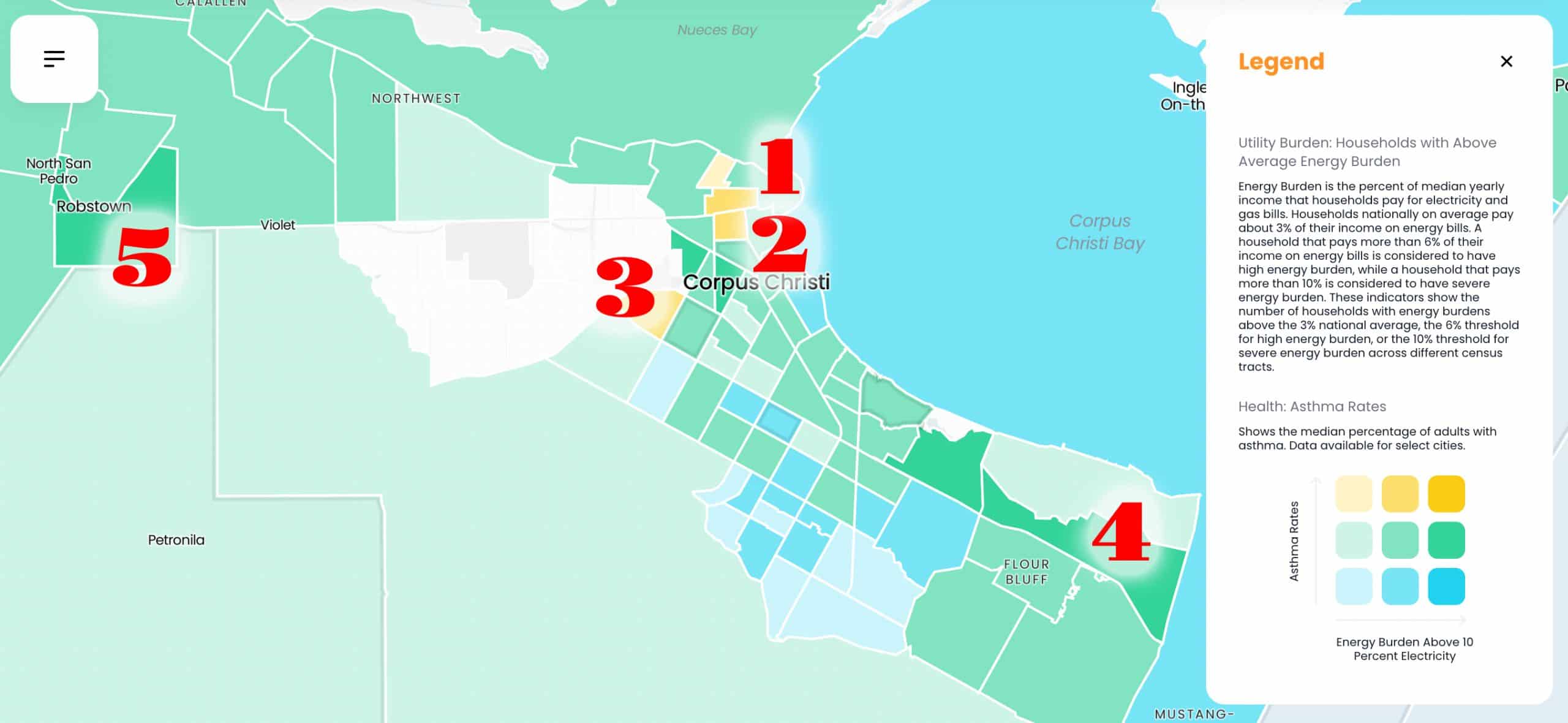 Deceleration’s mapping project utilizing Greenlink Analytics data shows how race, utility burden, asthma, and lack of health insurance is linked for many across the four-county Corpus area.