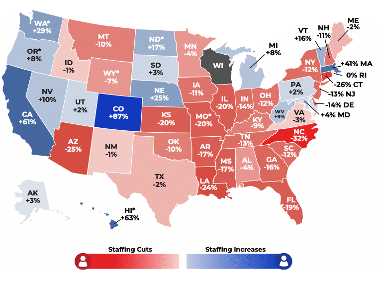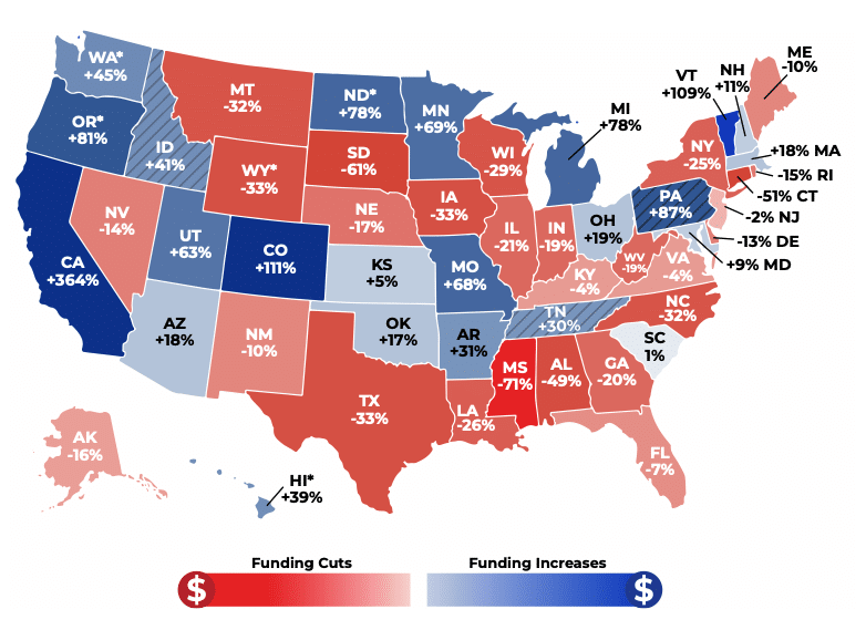 Graphics via EIP report, “State of Decline: Cuts to State Pollution Control Agencies Compound Damage from the Dismantling of EPA.”