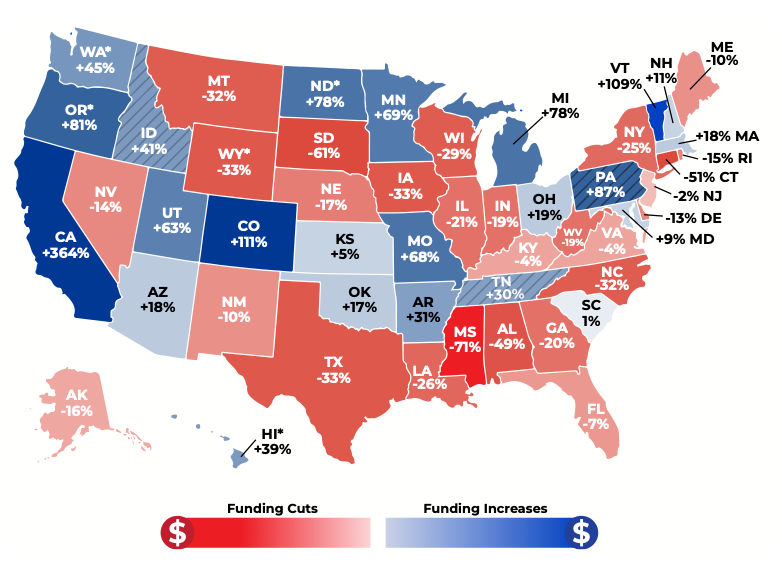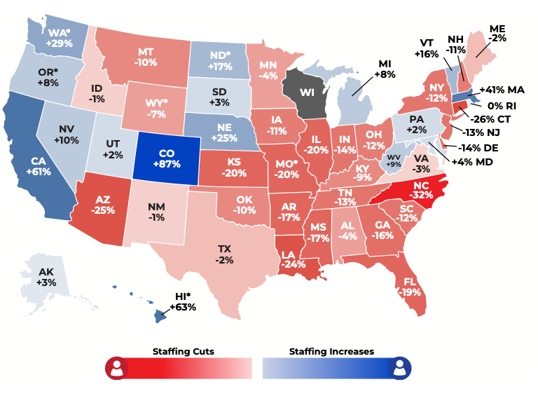 Graphics via EIP report, "State of Decline: Cuts to State Pollution Control Agencies Compound Damage from the Dismantling of EPA."