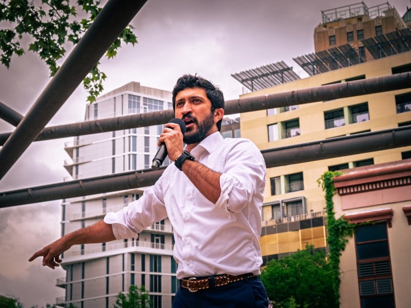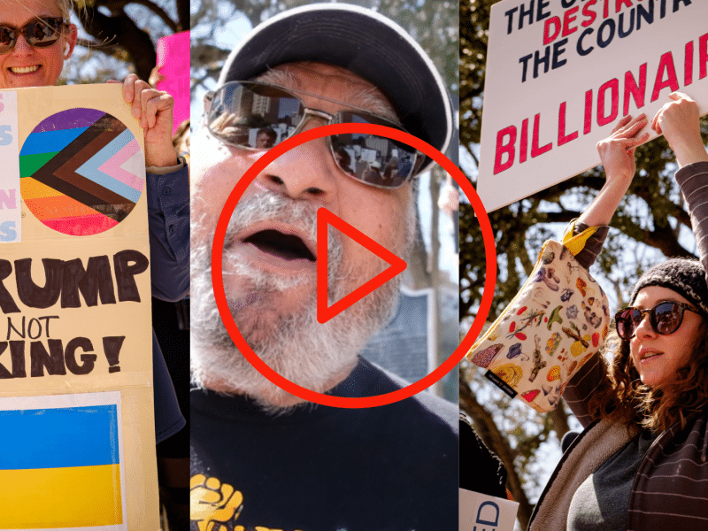 Deceleración tropezó con antiguos y actuales republicanos en la marcha ¡Manos Fuera! de San Antonio, uniéndose a millones de personas de todo el mundo que se manifestaban contra las recientes medidas de Trump, incluido el desmantelamiento de organismos federales y servicios sociales, y a favor de los derechos humanos fundamentales.