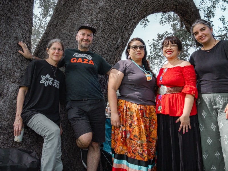 «O nos enfrentamos a mucho caos, a desastres globales, a lágrimas de los ojos de nuestros familiares… o nos unimos [and] unidos como pueblos del mundo», dijo Arvol Caballo de Mira.