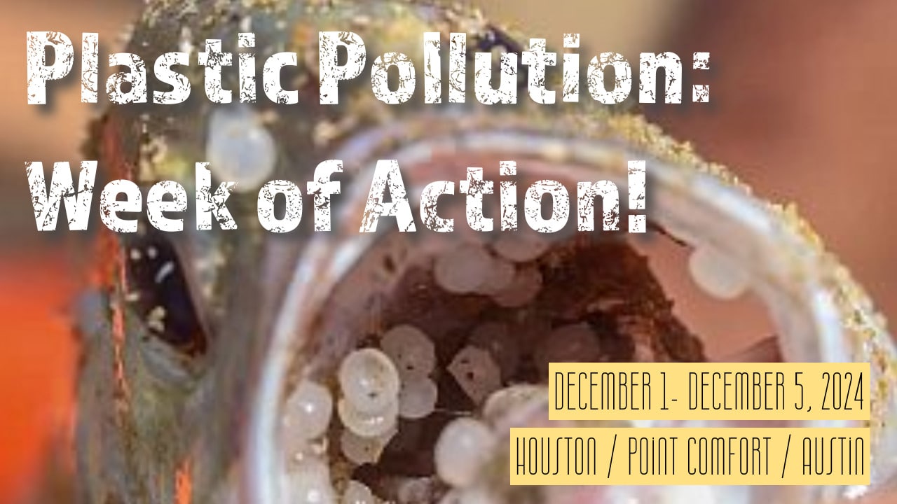 - December 4 at 6pm CT in Houston: Environment Texas will host a screening of “Plastic People: The Hidden Crisis of Microplastics.” Following the film, there will be a panel discussion featuring experts and activists, including Diane Wilson, a fourth-generation fisherman and winner of the Goldman environmental prize for her work documenting Formosa’s environmental abuses.