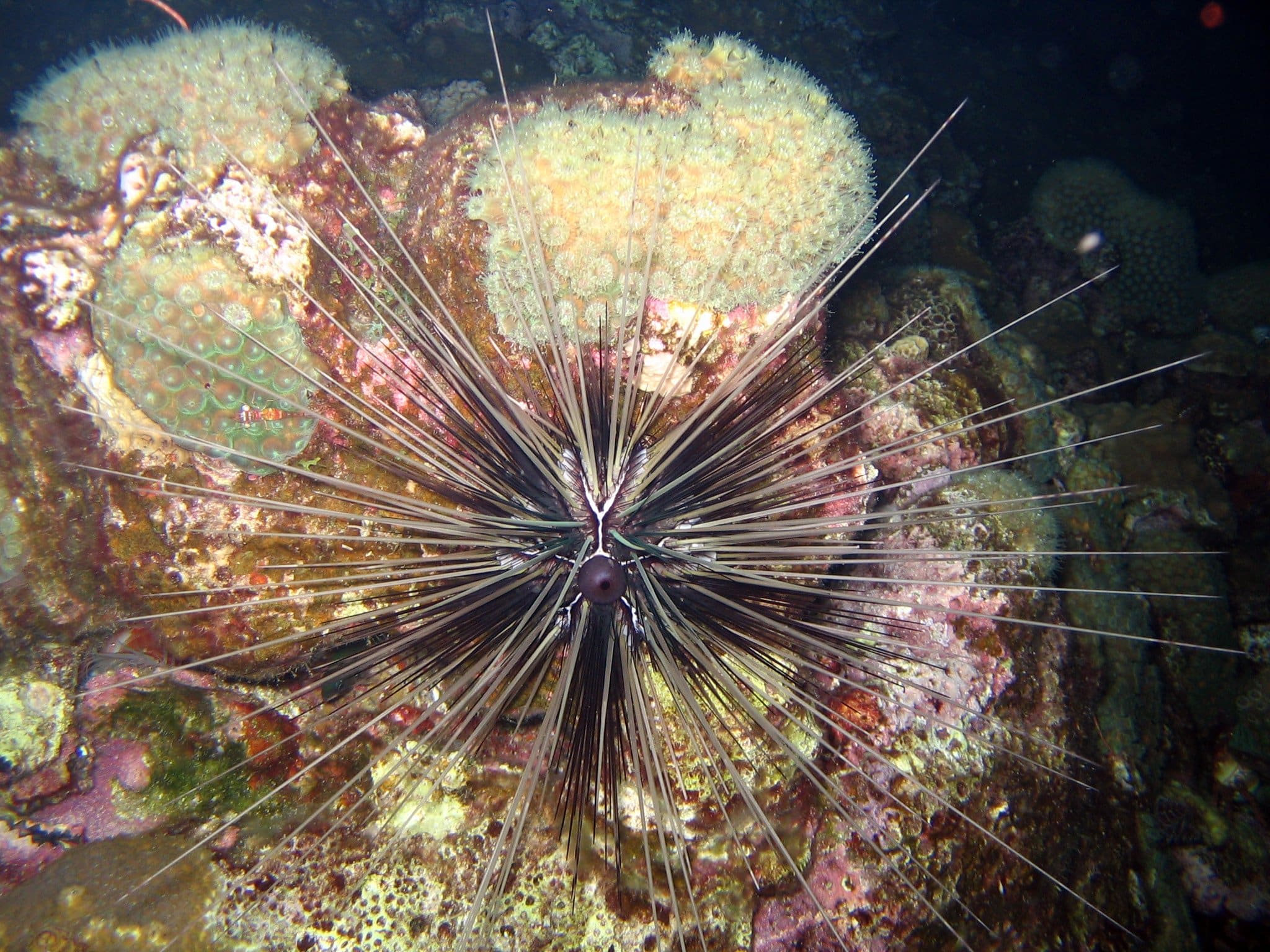 Erizo de mar de espinas largas (Diadema antillarum). Imagen: Kelly Drinnen/NOAA