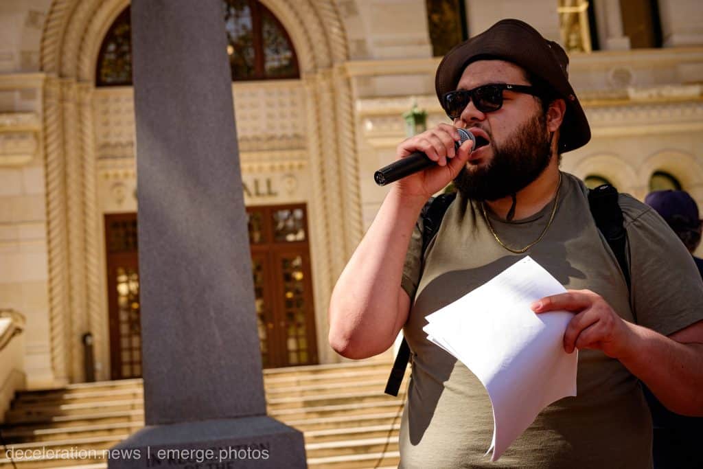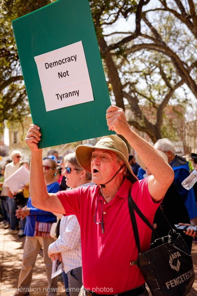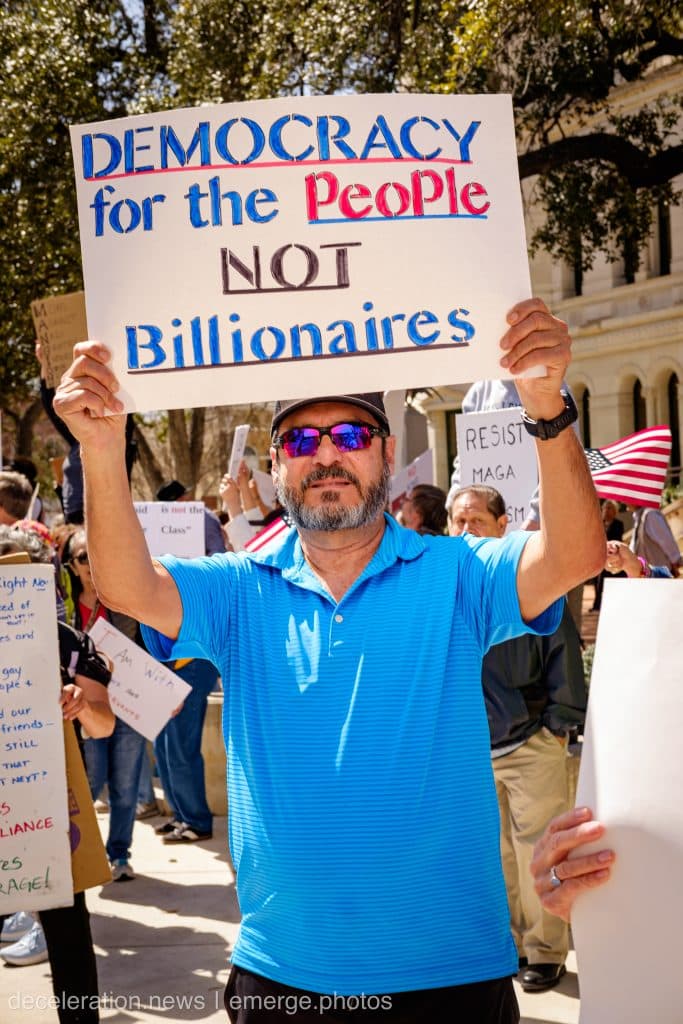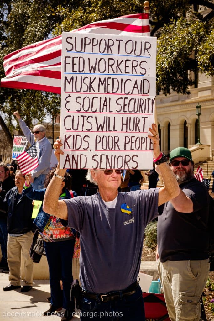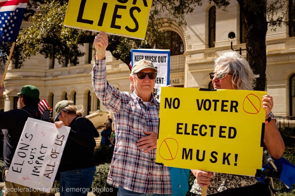 Donald Trump pasó el martes desplegando aranceles masivos sobre los mayores socios comerciales de Estados Unidos, México y Canadá, atacando a sus enemigos políticos y compartiendo desinformación con el Congreso sobre el asalto a la plantilla federal. En ciudades y pueblos de todo Estados Unidos, ciudadanos indignados se reunieron para protestar. Cientos de residentes de la zona de San Antonio, que exhibían innumerables carteles y pancartas contra las medidas de Trump, convergieron en el Ayuntamiento para hacerse oír. Se opusieron a la toma de poder sin precedentes de Trump, expresando su temor por la diezmación de agencias federales y organismos reguladores anteriormente independientes y por el presupuesto republicano que se avecina y que, según los analistas, junto con la motosierra de Elon Musk, lugarteniente no designado de Trump, perjudicará gravemente a los programas sociales, incluidos Medicaid, Medicare y la Seguridad Social. Los veteranos asistentes advirtieron de los esfuerzos de Trump por otorgar plenos poderes militares y policiales federales a un presidente que lleva tiempo prometiendo desatar el ejército contra los ciudadanos estadounidenses. Muchos de los entrevistados por Desaceleración dijeron que esperan que la democracia en Estados Unidos resista en la nación durante semanas o meses si el Congreso, los tribunales y el pueblo de la nación no se levantan para poner fin rápidamente a estos esfuerzos.