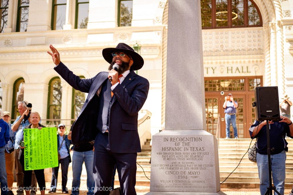 Martha Spinks: Soy la líder, del equipo de respuesta rápida que reunieron los Demócratas del Condado de Bexar. Y la razón por la que lo hemos hecho y la razón por la que ves hoy este acto con muchas otras organizaciones es que estamos alarmados por lo que está ocurriendo en Washington. Pero también somos cada vez más escépticos de que vaya a haber alguien en Washington que nos salve. Claramente, creo que éste es nuestro momento Paul Revere. Es el momento en que nos damos cuenta de que tenemos que salir, dar la alarma y asegurarnos de que la gente comprende lo grave que es esto y lo rápido que está avanzando.