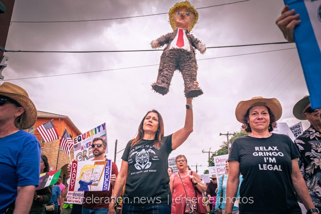 Más de 2.000 residentes de la zona llenaron las calles del centro de San Antonio y se concentraron en Main Plaza el 19 de abril de 2025. Fue una repetición de una concentración similar celebrada dos semanas antes, que tuvo un resultado casi igual de significativo. Ese mismo día se celebraron marchas similares -cientos de ellas, la mayoría convocadas por el recién surgido movimiento #50501-en todo Estados Unidos. Incluían concentraciones en más de una docena de pueblos y ciudades de Texas.