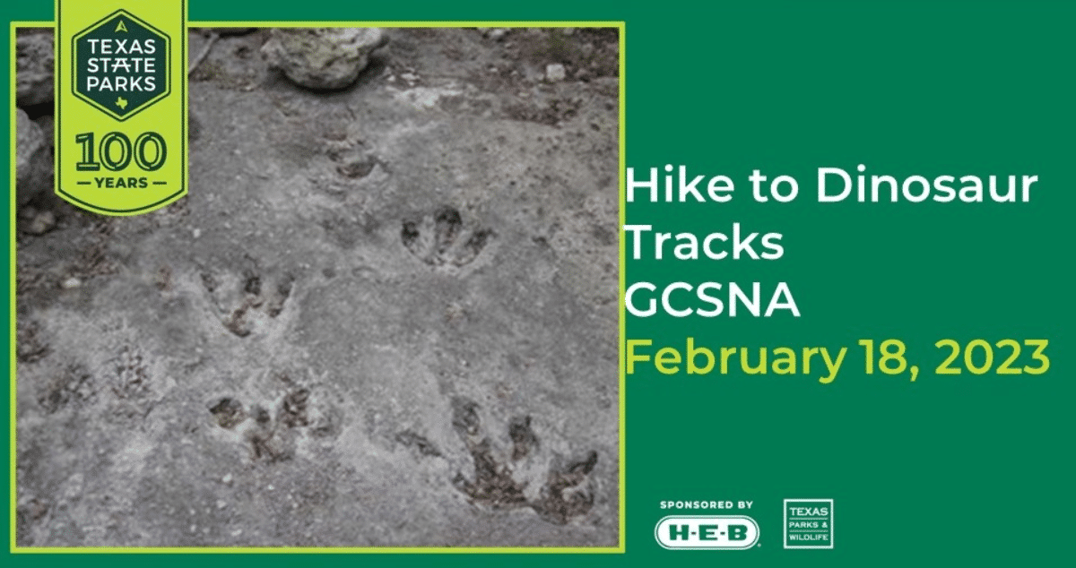 Join the Friends of Government Canyon for a guided hike at Government Canyon State Natural Area. 9 AM – noon. Discover how water 100 million years ago resulted in our being able to see these amazing animal tracks today and into the future.