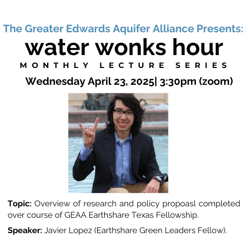 Join us for the Water Wonks Lecture # 4: Overview of research and policy proposal completed over course of the GEAA Earthshare Texas Fellowship.