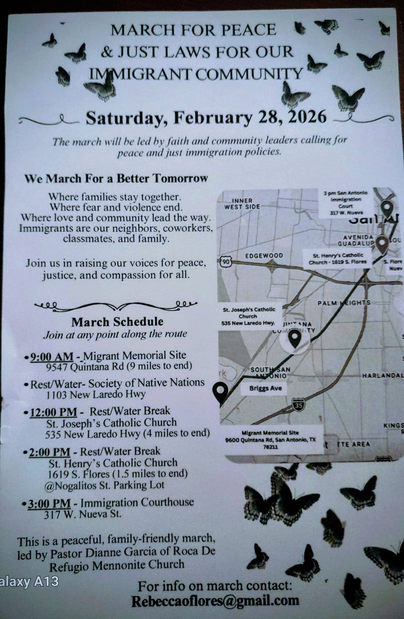 "We march for a better tomorrow. Where families stay together. Where fear and violence end. Where love and community lead the way. Immigrants are our neighbors, coworkers, classmates, and family. Join us for raising our voices for peace, justice, and compassion for all."