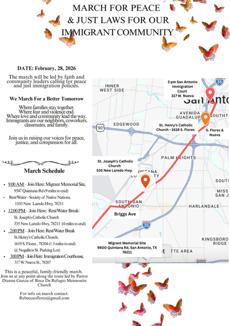 "We march for a better tomorrow. Where families stay together. Where fear and violence end. Where love and community lead the way. Immigrants are our neighbors, coworkers, classmates, and family. Join us for raising our voices for peace, justice, and compassion for all."