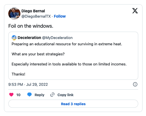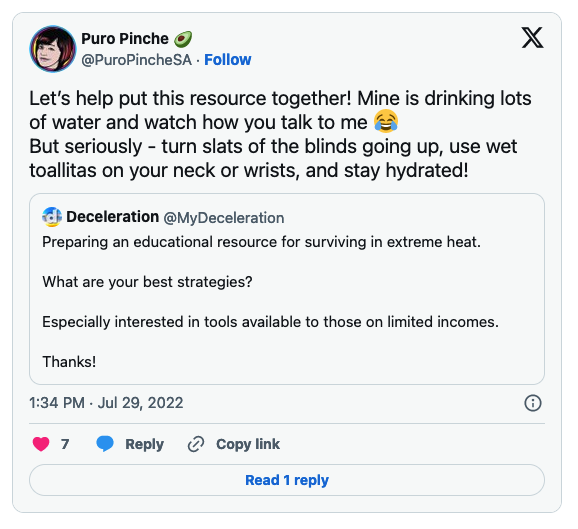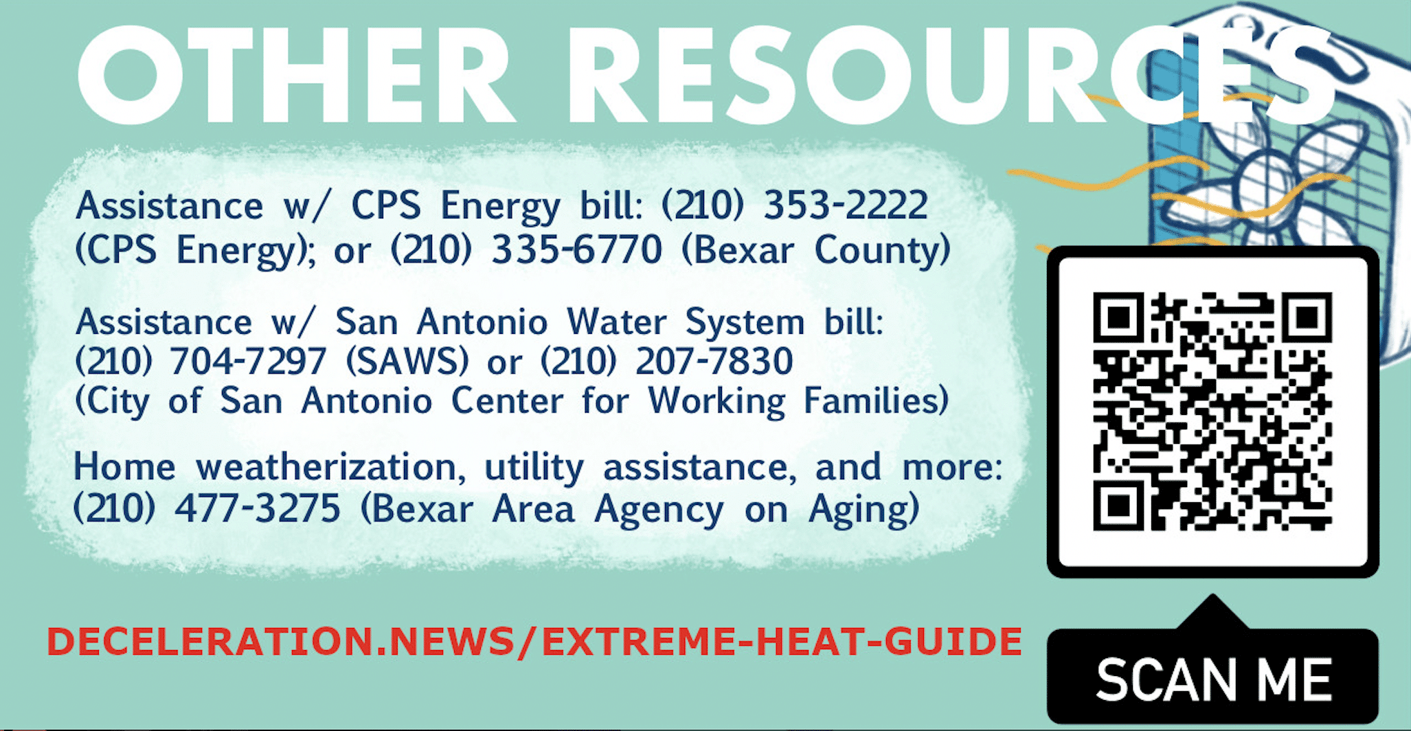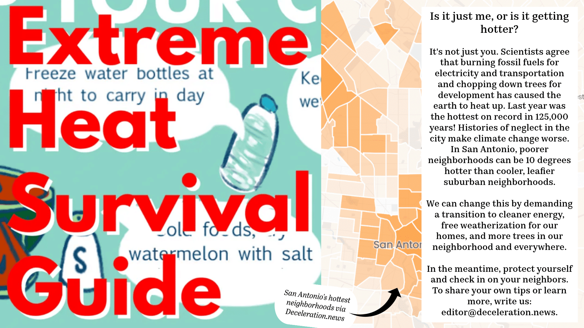 Deceleration’s bilingual community resource to help our friends and neighbors navigate dangerous extreme heat events in San Antonio, South Texas, or wherever you may be sweltering.