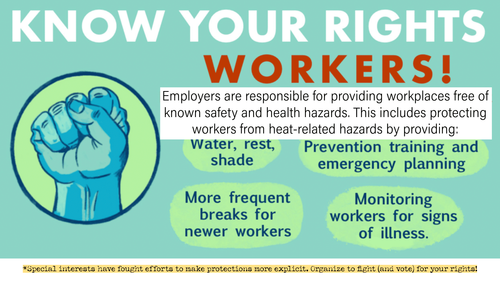 Washington, Minnesota, and California have OSHA-approved rules that set specific heat standards (Cali, for example, kicks in extra protections at 80 degrees.)