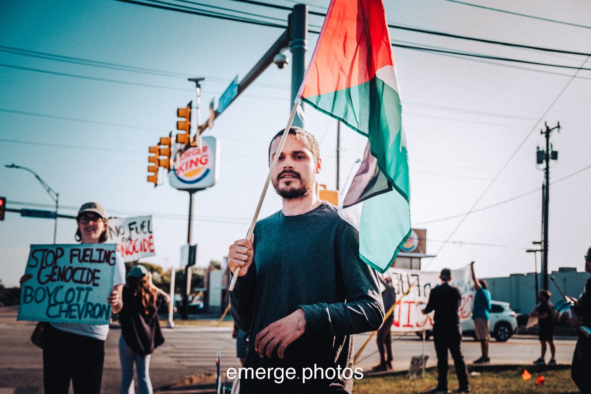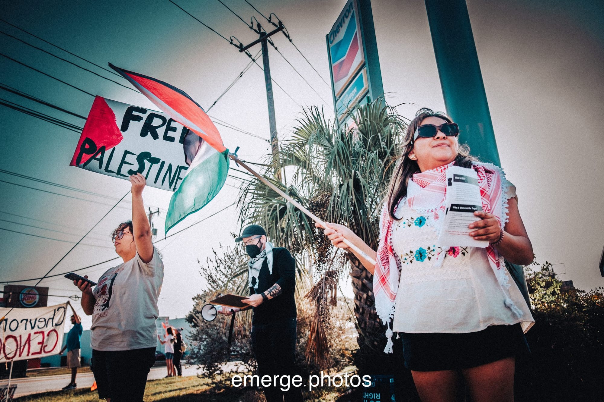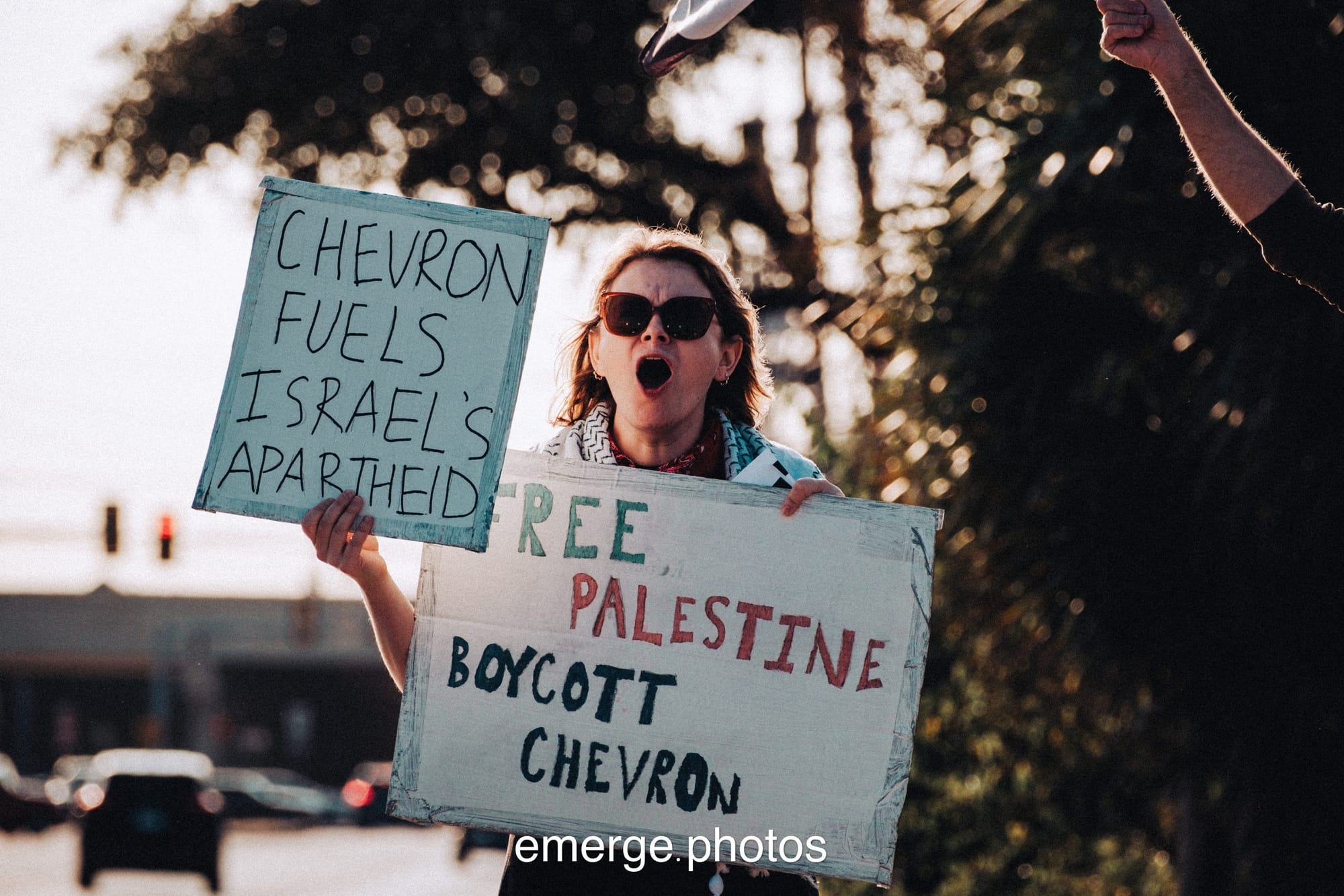 The Chevron station picket in San Antonio marks the beginning of a broader US campaign to step up pressure on the company, which recently moved operations from California to Houston (“the policies [in Texas] are welcoming of energy companies,” Chevron executive Mike Wirth said). In addition to asking drivers directly to boycott Chevron and to communicate this decision to CEO Wirth, Stop Fueling Genocide is also talking to the franchise owners of San Antonio’s 57 Chevron-branded filling stations, asking them to sign onto a national petition urging Chevron to divest from its business ties to Israel.
