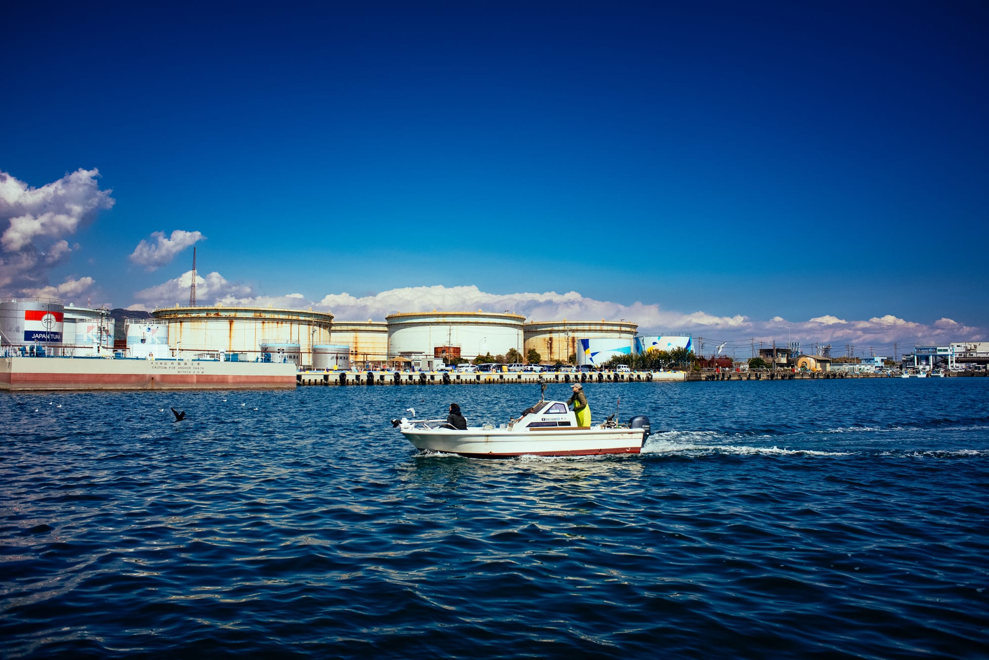 One night I got on a boat that toured Tokyo Bay. I could not discern any space of land that did not have some kind of machine or facility on it. At one section of the channel, there were flares in every direction and countless smoke stacks venting.