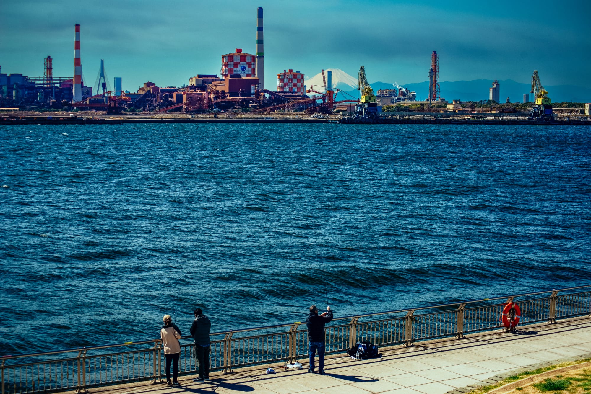 One night I got on a boat that toured Tokyo Bay. I could not discern any space of land that did not have some kind of machine or facility on it. At one section of the channel, there were flares in every direction and countless smoke stacks venting.