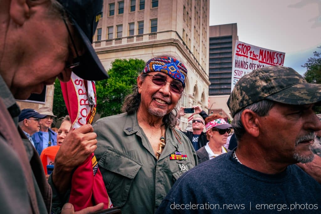 Many carried signs objecting to attacks on veteran healthcare and Social Security.