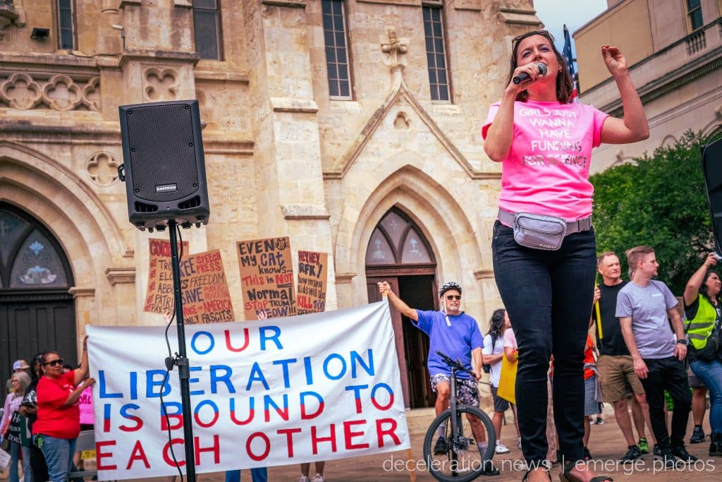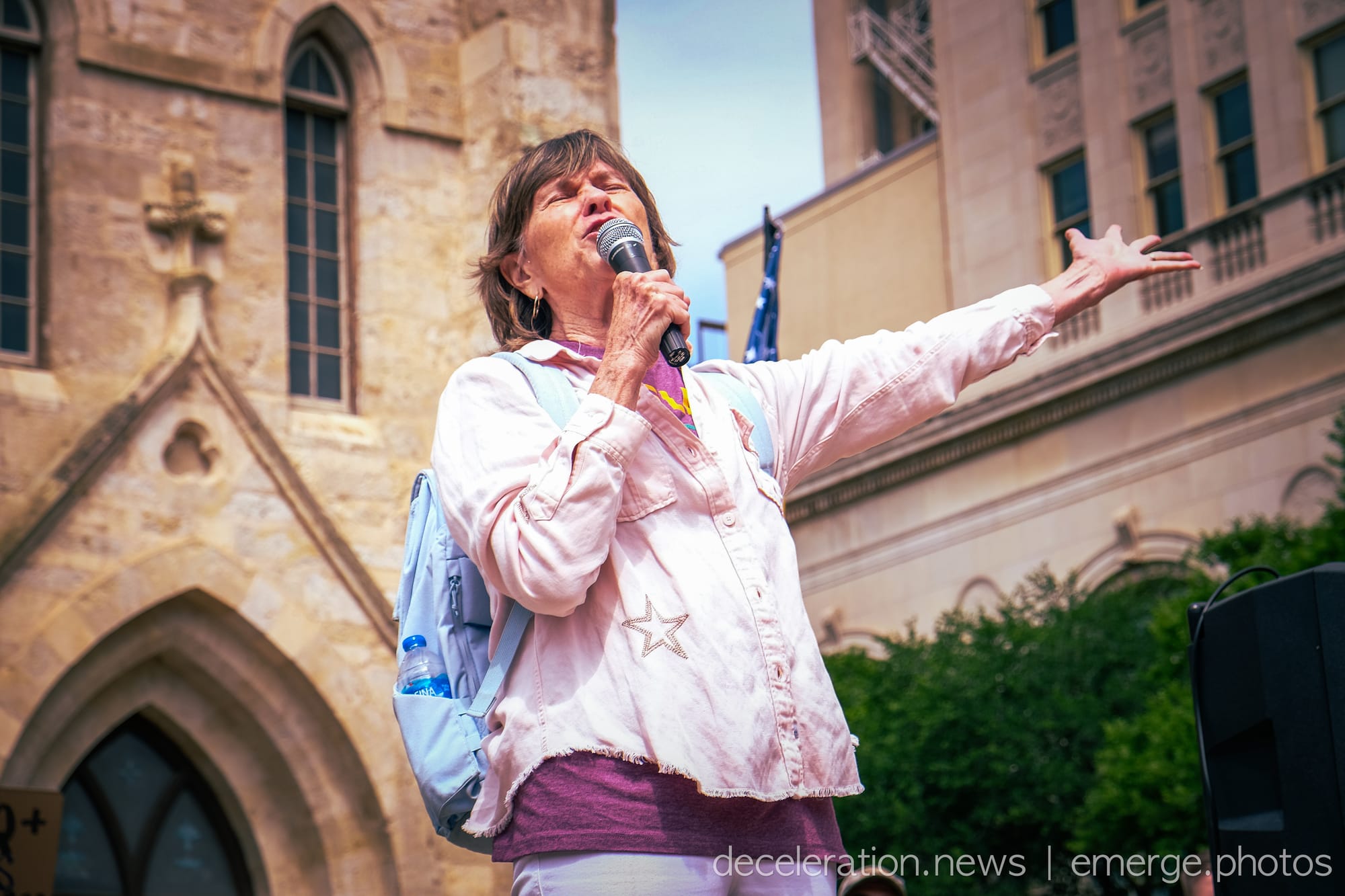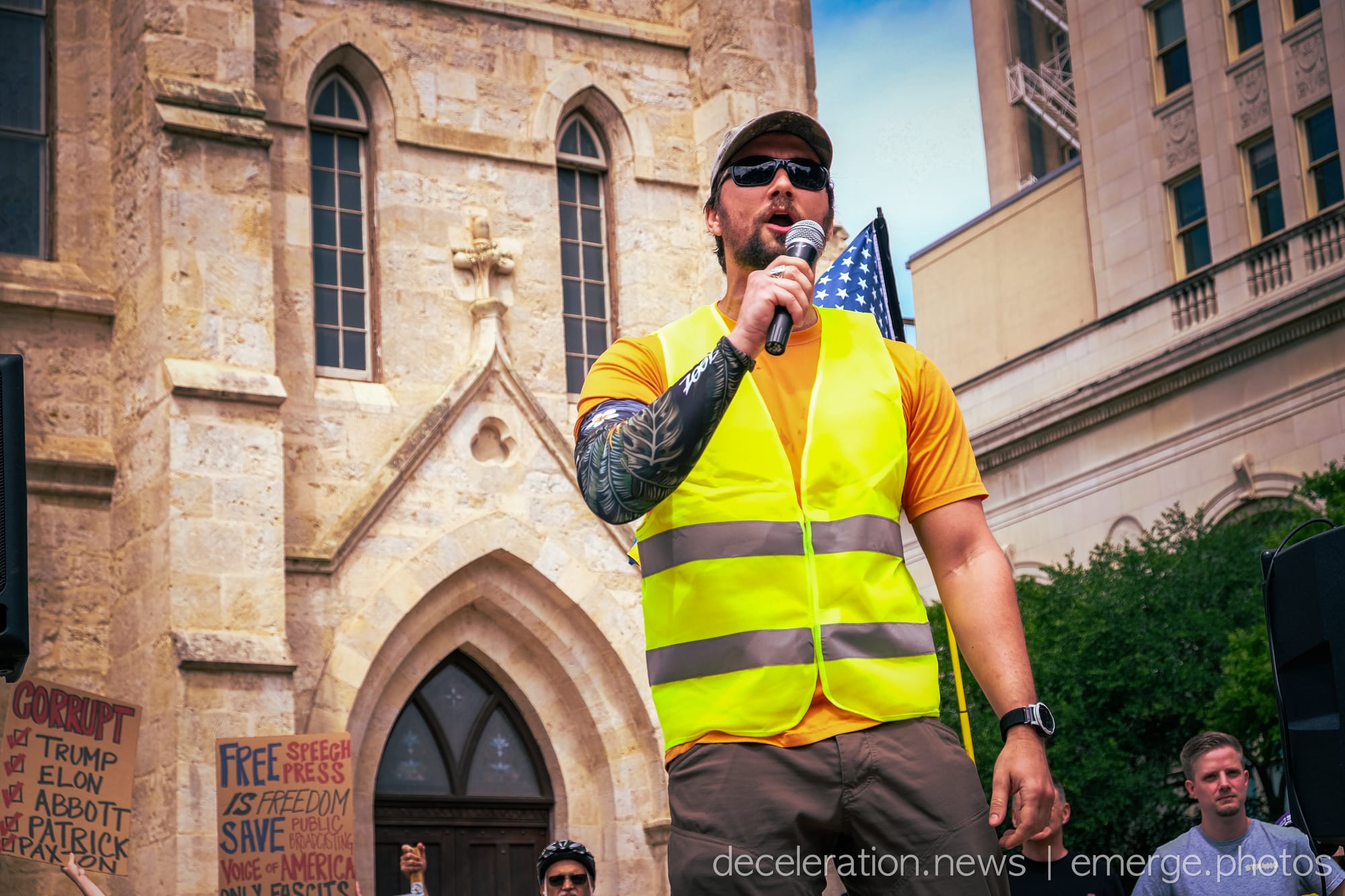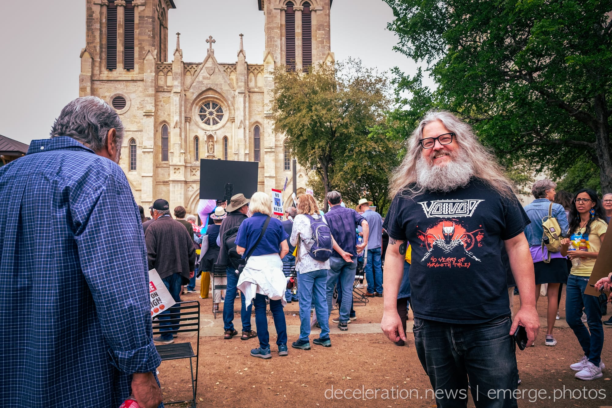 Mason, another 50501 San Antonio event organizer, revved up the crowd: