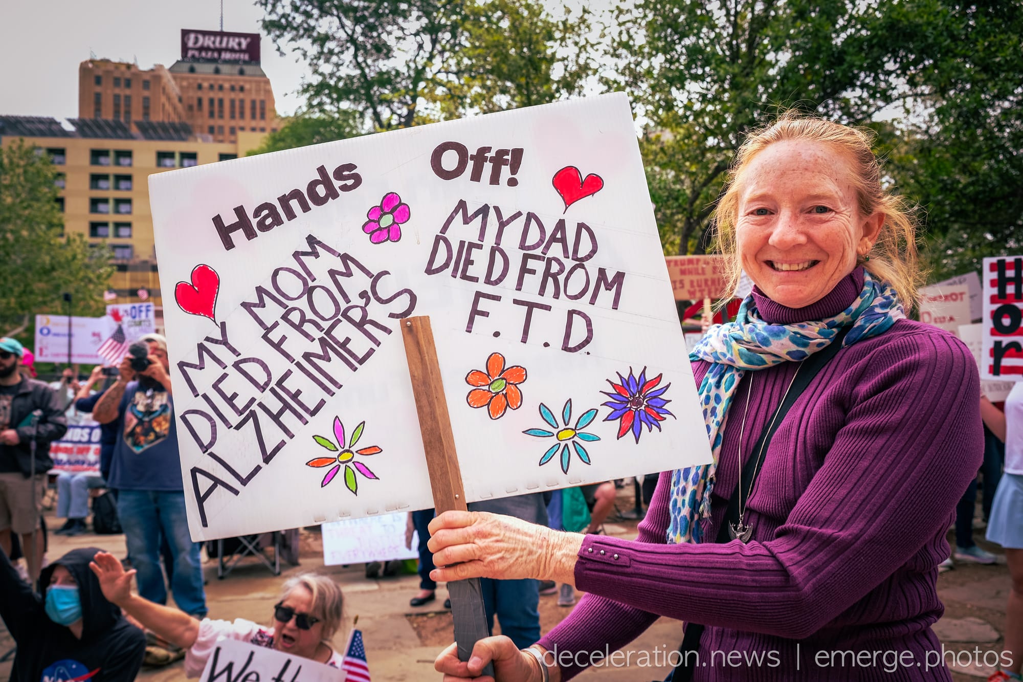 “I was a Republican my entire life,” said one woman with a large and detailed poster objecting to attacks on federal workers and the risks to the public health those actions promise. “When Trump won the first time I was like: OK. Let’s see what he’s got. I saw what he had. And I went…completely the opposite direction.