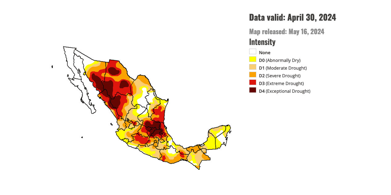 Most of Mexico and Central America are still gripped by drought. Across Mexico, hundreds of wildfires have been burned over more than 250,000 acres, prompting a rash of quality alerts across Texas and the Southern United States. Extreme temperatures that are also hitting the world’s oceans, including the southwestern Gulf of Mexico, have contributed to particulate formation.