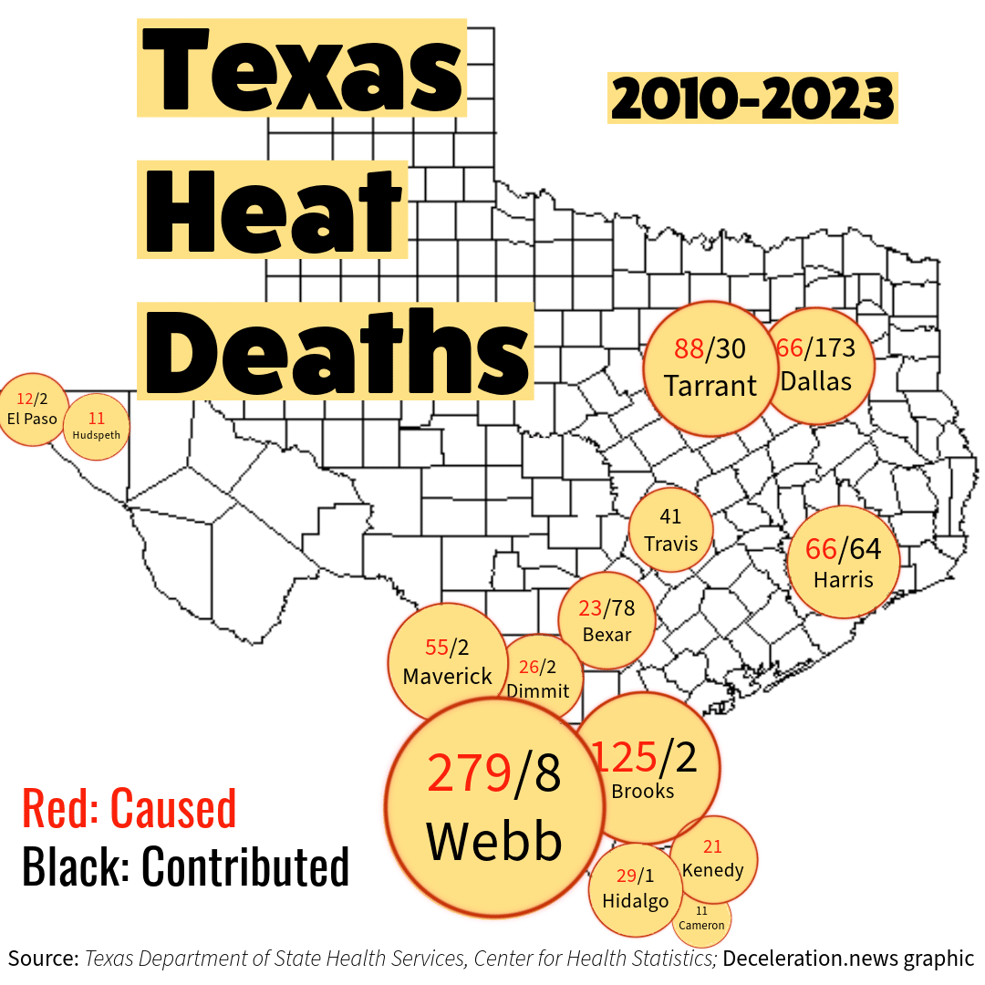 - September 15, 2023: Now former Bexar County Public Information Officer Tom Peine tells Deceleration the Bexar County Medical Examiner does not track heat deaths.