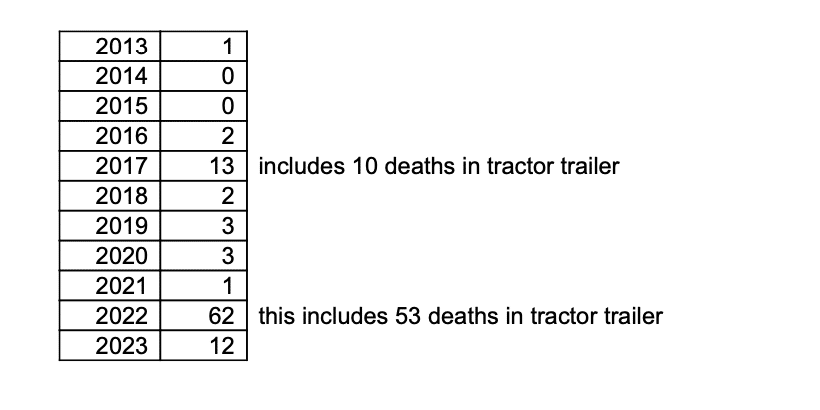 Below is some statistics from Bexar County including note of the 2017 and 2022 migrant deaths inside tractor trailers.
