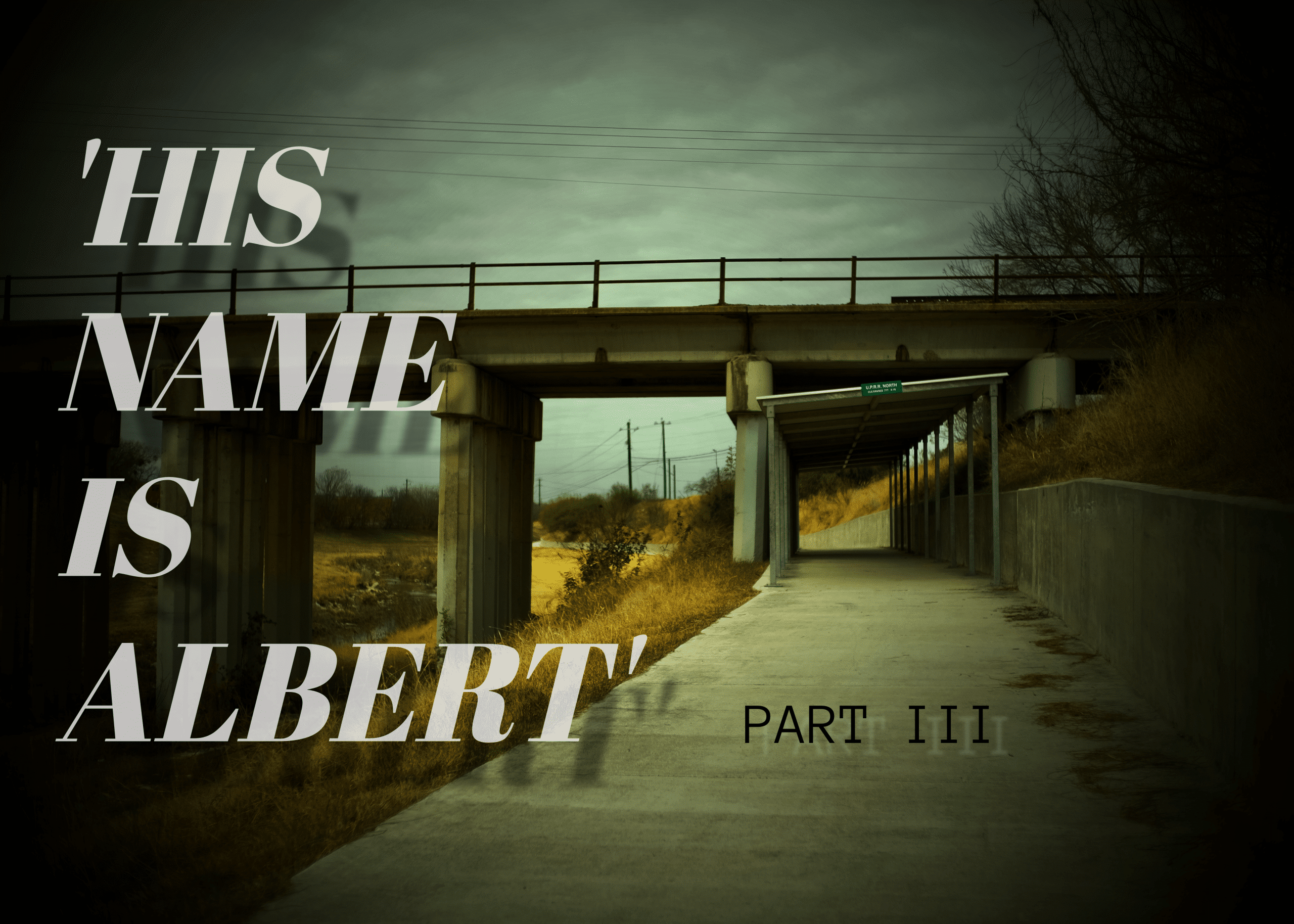 He would stay at BAMC four months before they discharged him to Haven for Hope, which he quickly left, wary from prior experiences with theft in their outdoor courtyard. With money the hospital therapists had given him, he’d caught the bus back to his Nogalitos Street beat and soon caught up with his old friend Jake. Months later, they left the streets together for the downtown hotel shelter—that had been one of Albert’s conditions for going, that they be taken in together—but when Jake got housed after Albert got the boot, it created a rift between them that deepened to the point of combustion the day Albert was hospitalized.