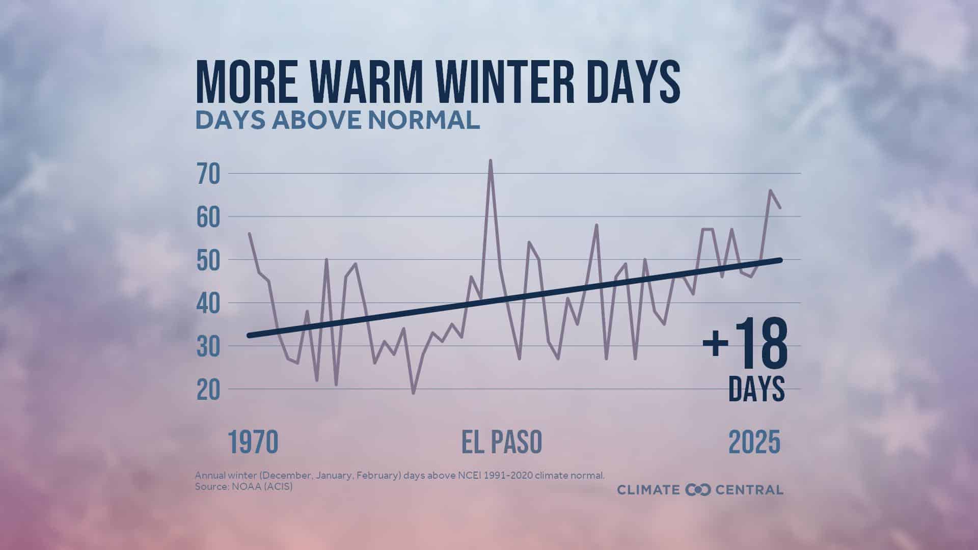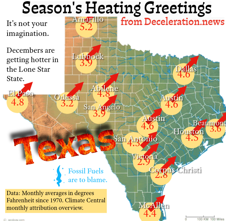 El Paso’s Decembers have grown 4.8°F hotter on average since 1970, Climate Central reports. And Amarillo’s have grown 5.2°F hotter in the same time period.