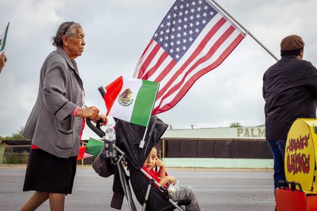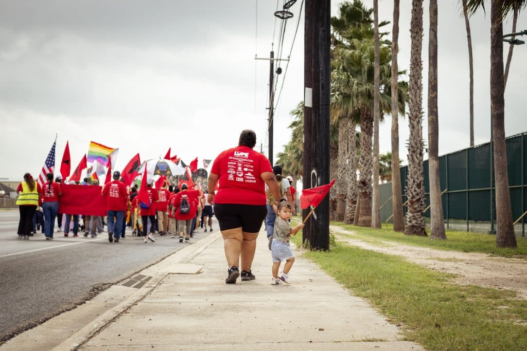 Adorned in red and soundtracked by Los Tigres Del Norte’s “Cesar Chavez,” hundreds of people walked on Saturday down Business 83 to downtown Alamo and back. You could hear them chanting nearly a mile away, the semi-trucks honking in solidarity, and the wind blowing against your eardrums muffling both.