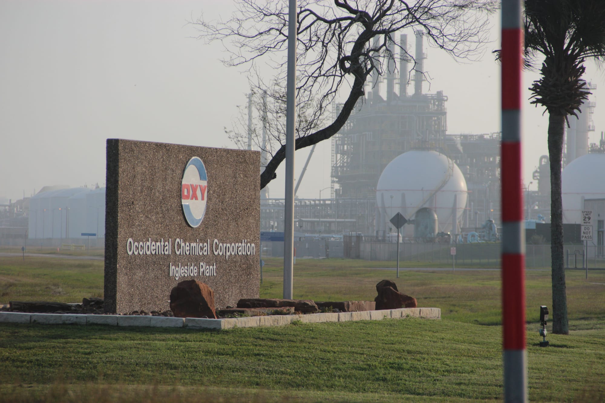 As the sun sets, the Coastal Bend is still bright: floodlights from petrochemical facilities beam through the night as operations continue overnight.