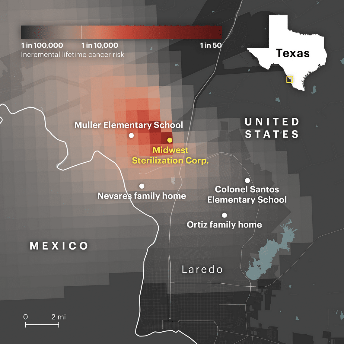 The facility elevates the estimated lifetime cancer risk for nearly half of Laredo’s residents to at least 1 in 100,000, the analysis found. More than 37,000 of those are children.