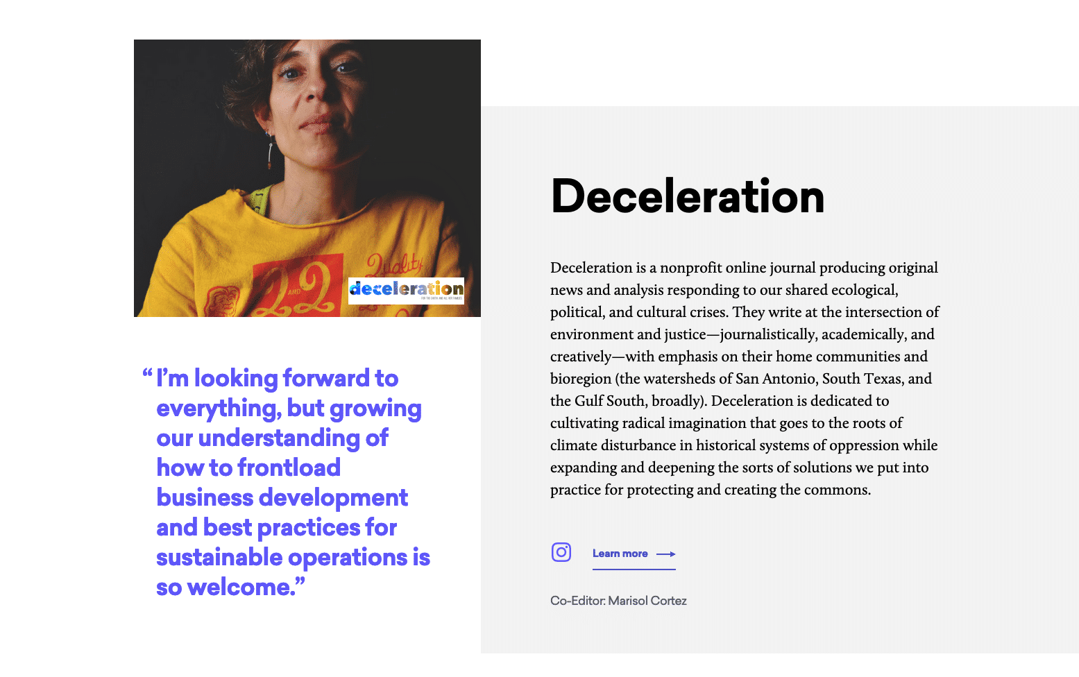 In the case of Deceleration, an online environmental justice journal operated by award-winning journalists and experienced community organizers, the investment allows for some rapid and welcome changes.