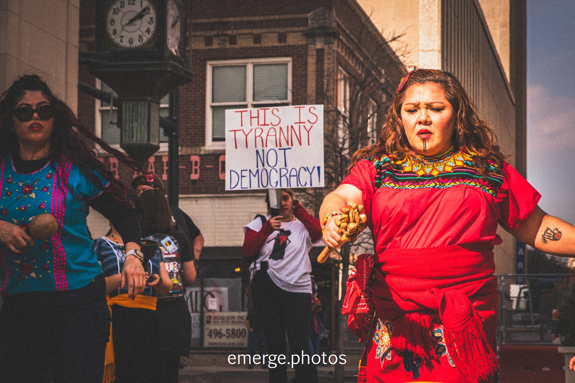 Members of the Autonomous Brown Berets chapter and danzantes with Danza Azteca Yanaguana and Kalpulli Ayolopaktzin demonstrate outside San Antonio City Hall while hundreds testify inside against local cooperation with ICE. Images: Greg Harman