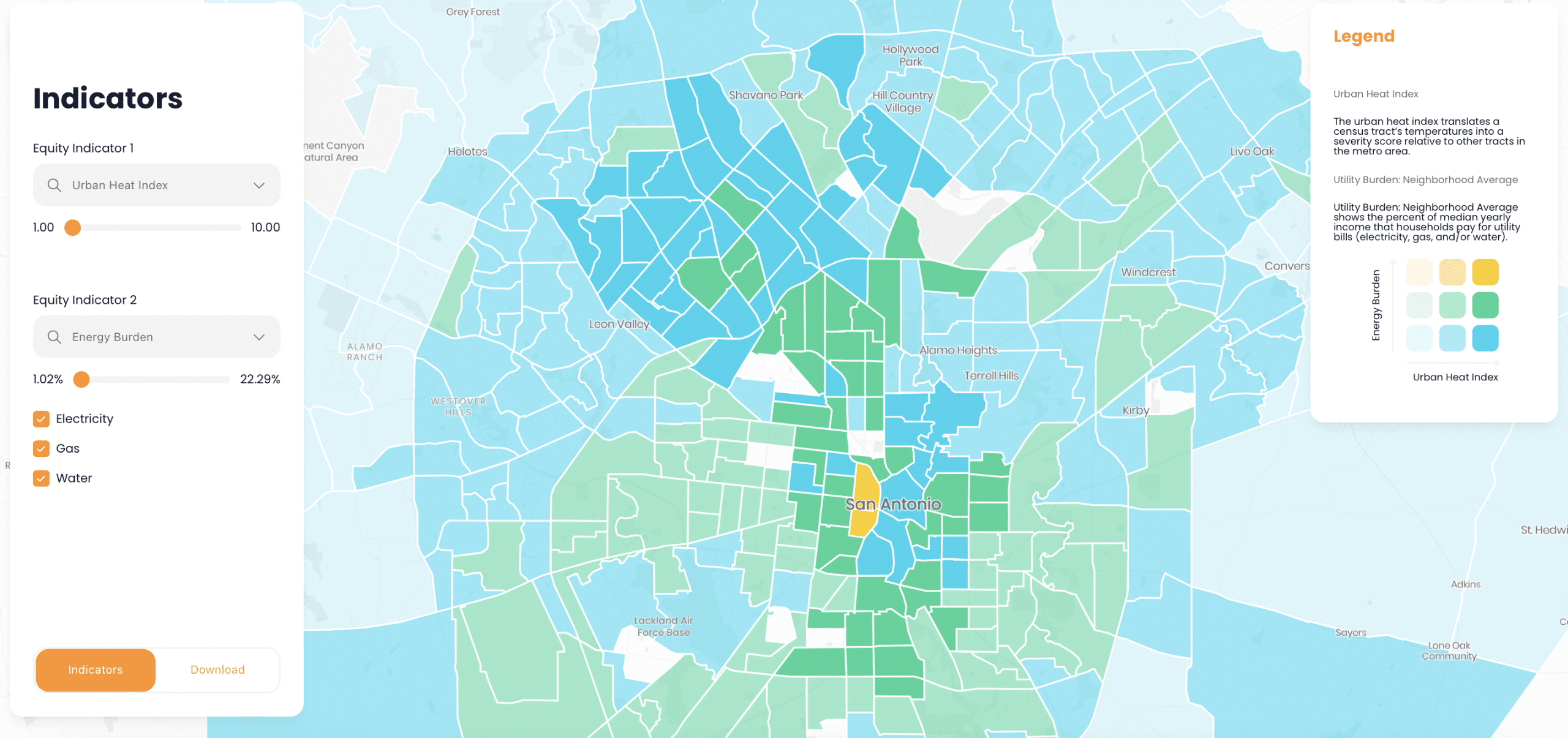 Deceleration was trained by Greenlink to utilize their platform. Last year, Deceleration mapped the relative energy burden of Bexar County residents. Energy burden is defined as the percentage of annual household income that residents pay for electric, gas, and water utilities (See: San Antonio’s Five Most ‘Energy Burdened’ Neighborhoods). We found considerable overlap between areas with high energy burden and high heat island.