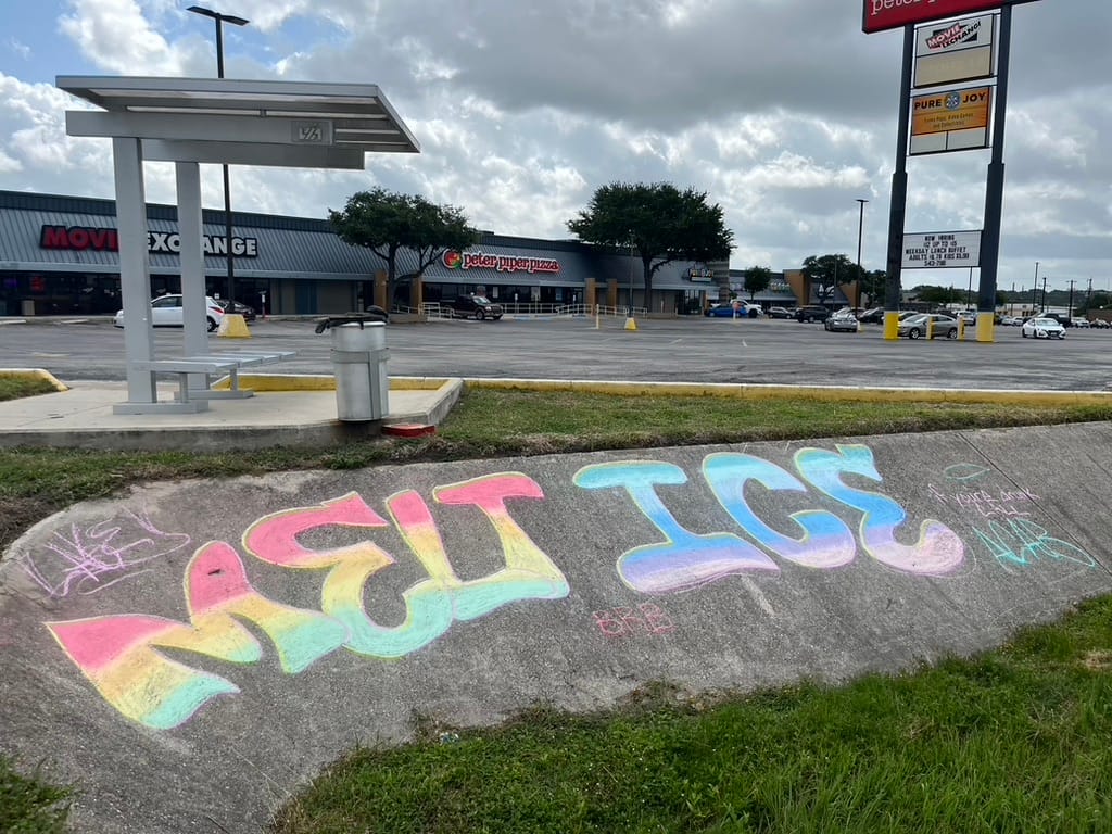 “Going to my Google MyMaps shows where these pieces were created, along with hundreds more art pieces. That and the police interactions over the recent years where police harass me over the chalk.” —Lakey Hinson