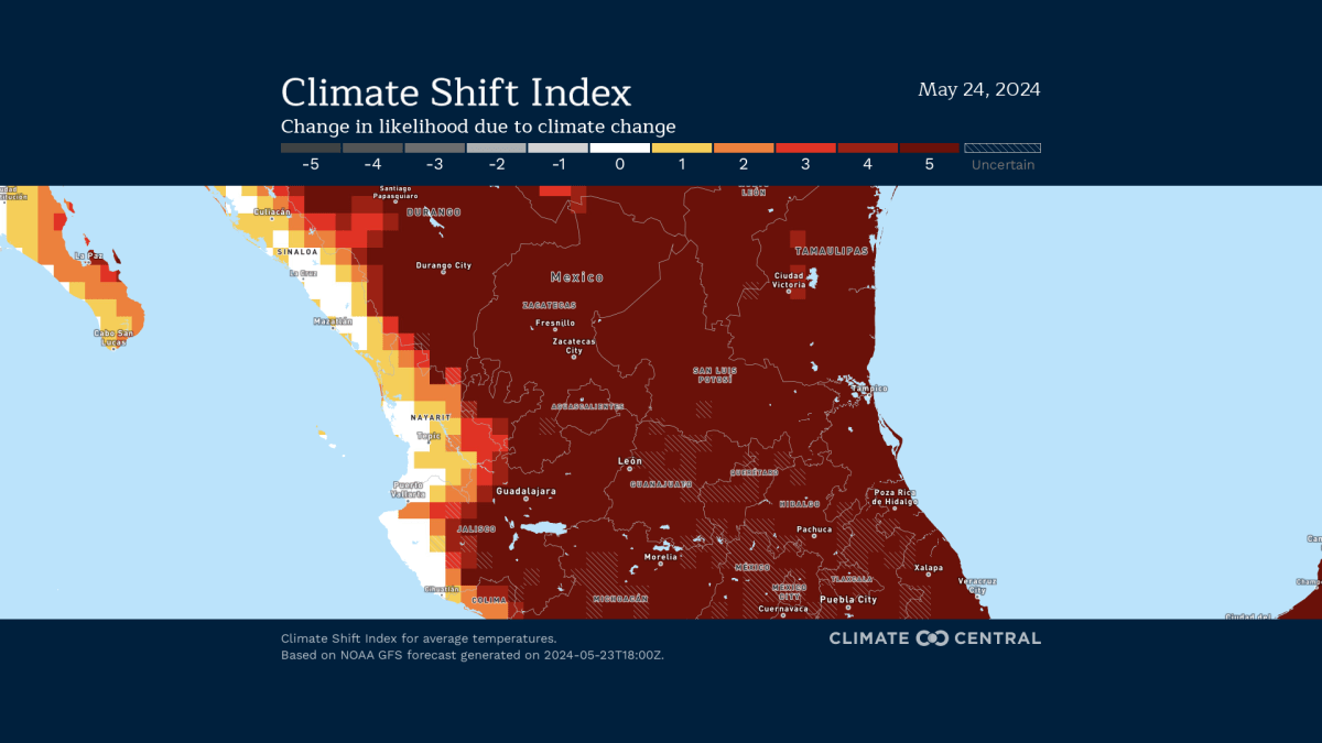 @jeffsclimateclassroom Historic heat dome in Mexico/ Central America!! Highs have reached up to 124, Florida has had heat index ‘s to 115. It’s only May! Climate change is making heat waves more frequent, intense & larger. This dome will grow stronger and be relentless into next week. #extremeweather #weather #climatechange #climate