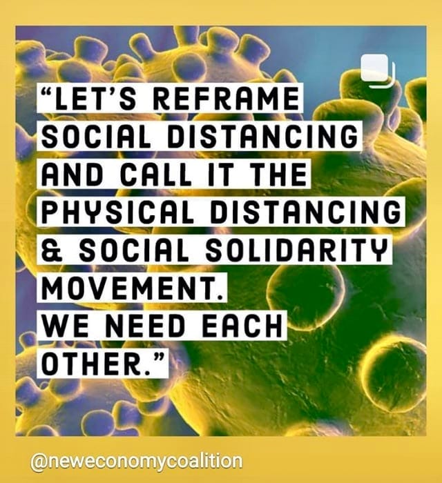 “Social distancing” can be reframed as “spacious solidarity,” which connects us together in an act of taking space, rather than self-isolation.